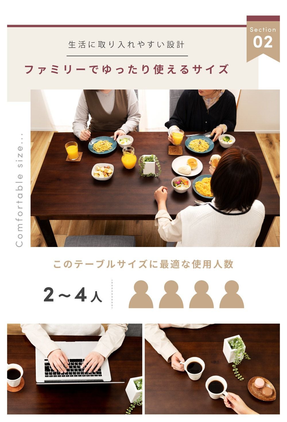 4人で使用したとしても窮屈感を感じず天板を広々と使うことができます。