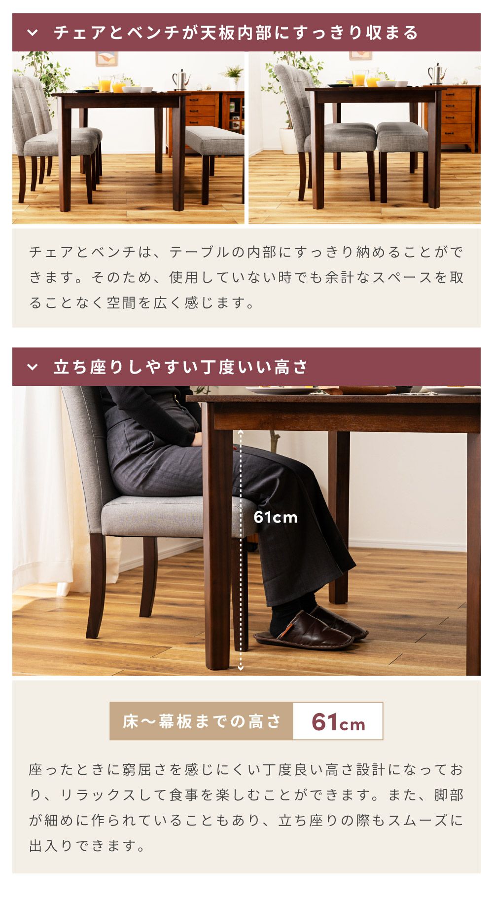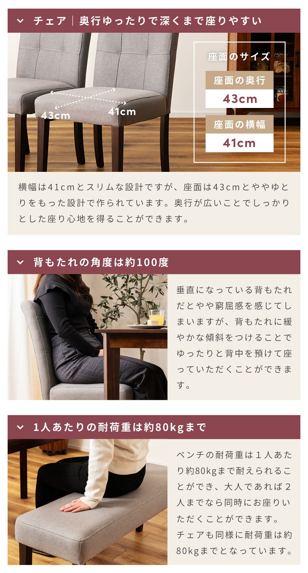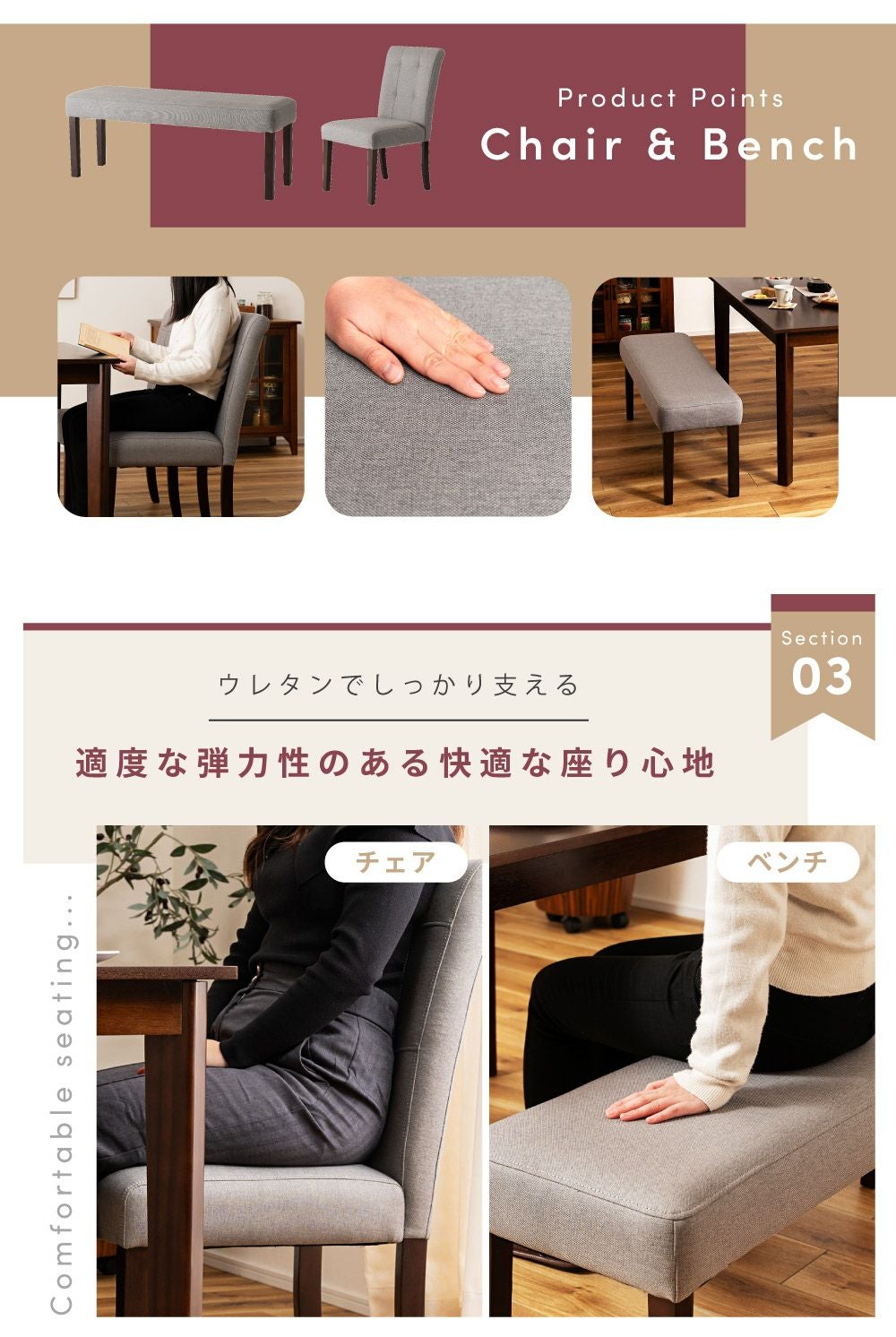 ダイニングテーブルセット 4人用 4点セット おしゃれ ダイニング ダイニングセット ブラウン 椅子 テーブル 天然木 ファブリック シンプル ハイバック ベンチ