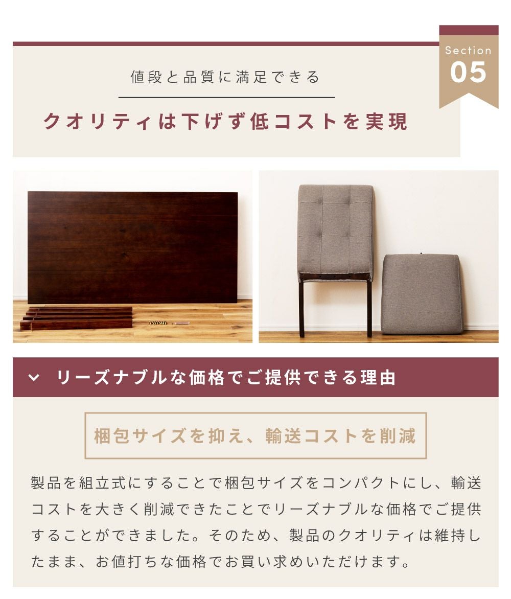 製品を組立式にすることで梱包サイズをコンパクトにし、輸送コストを大きく削減できたことでリーズナブルな価格でご提供することができました。