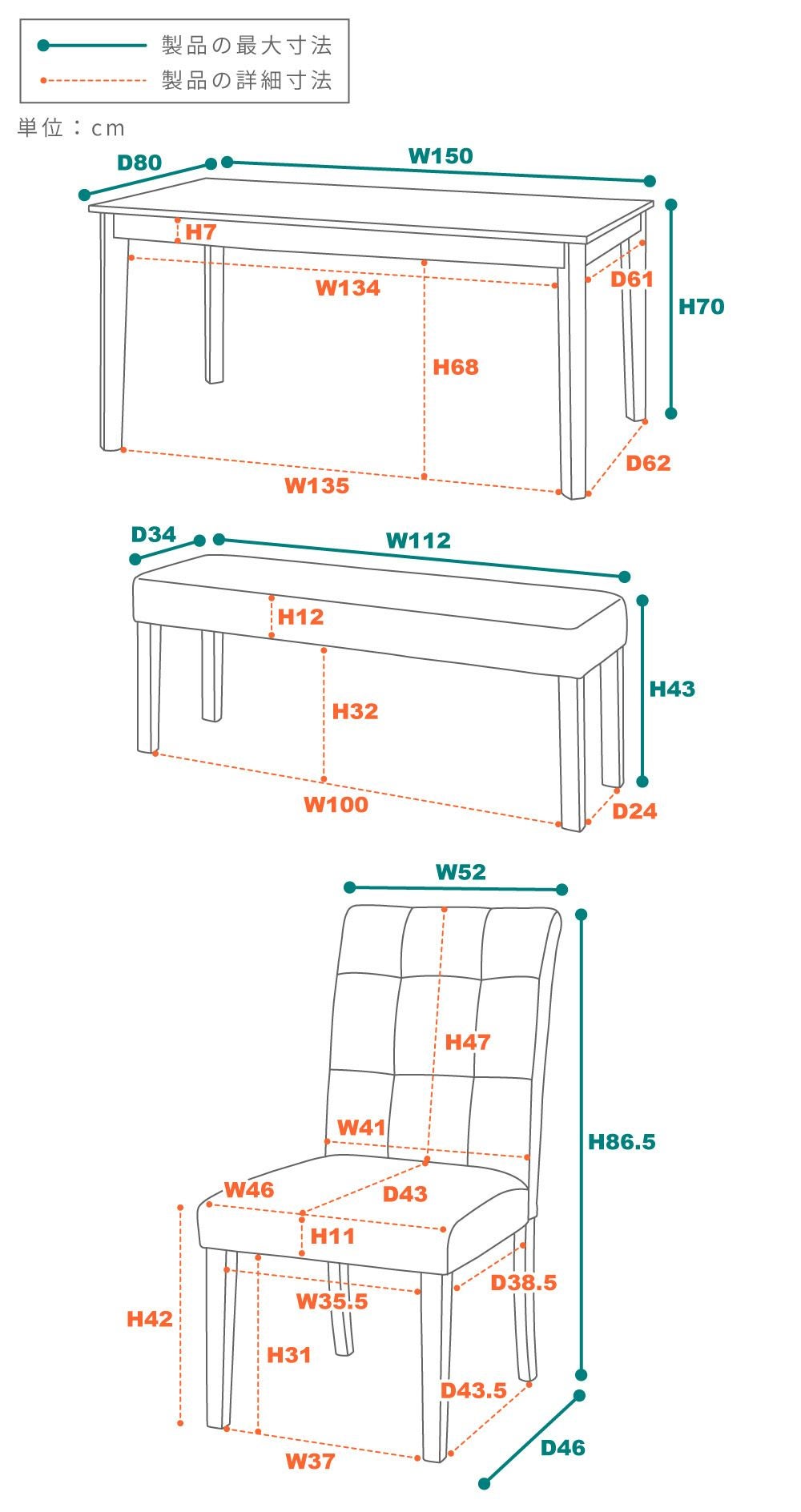 サイズ テーブル:幅150×奥行80×高さ70cm