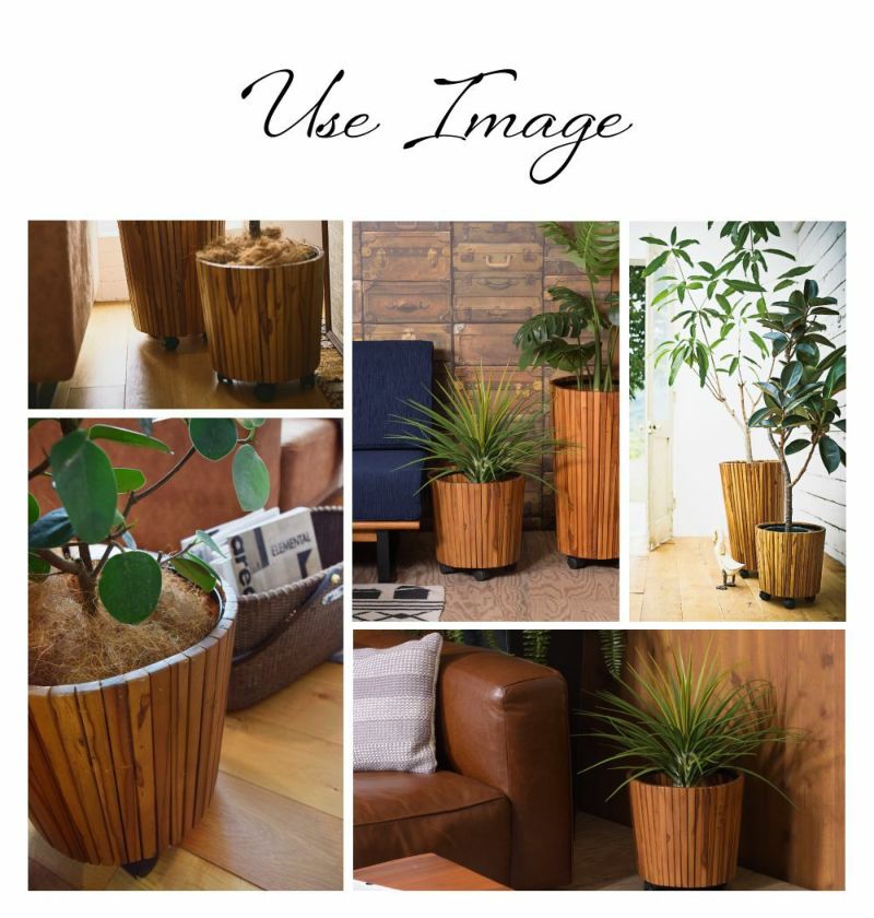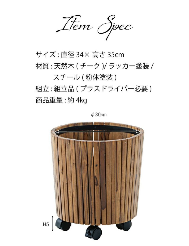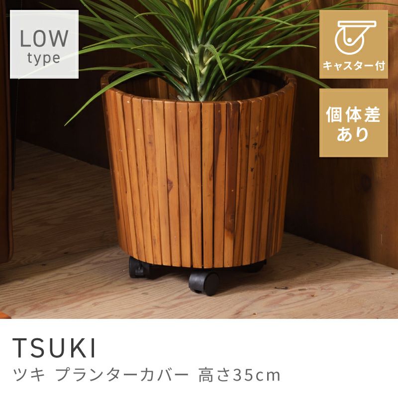 シンプルでナチュラルなプランターカバー プランター 高さ35cm 直径34cm キャスター付き ガーデニング ウッド|TSUKI