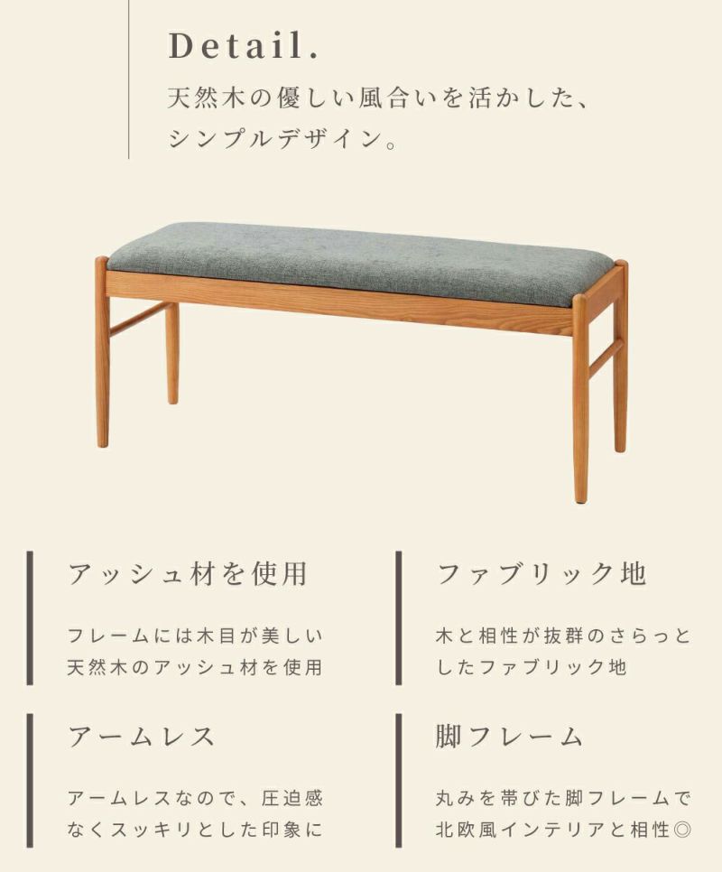コンパクトなサイズ感で使いやすいベンチ ベンチ 椅子 おしゃれ ダイニングベンチ ベンチ 木製 北欧 布地|VYNO