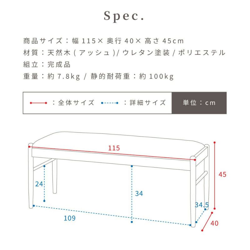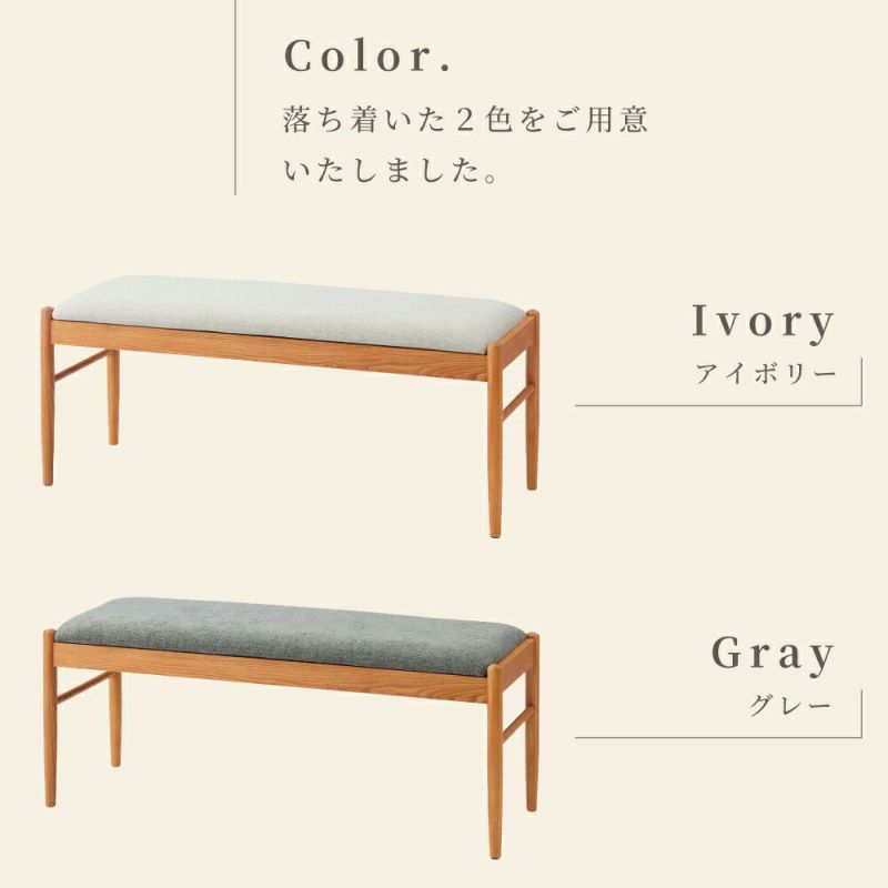 ダイニングベンチ 長椅子 ベンチシート 木製 幅115cm 背もたれなし リビング ナチュラル 北欧 シンプル カントリー調 天然木 おしゃれ グレー アイボリー