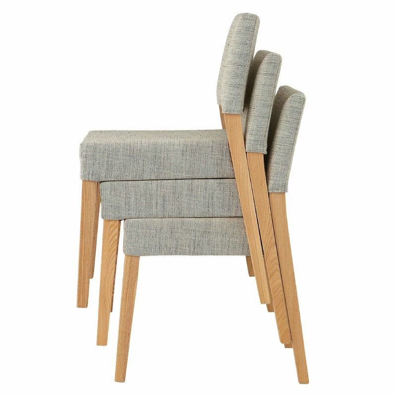 ●座面と背もたれに張り地を使って優しい印象に仕上げた、スタッキング可能なダイニングチェア