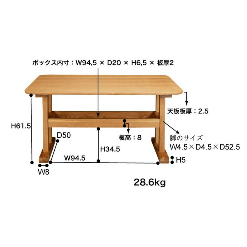 ダイニングテーブル テーブル 机 幅130cm 4人用 角丸 天然木 アッシュ ウレタン塗装 収納 棚付き 2本脚 シンプル おしゃれ 木製 北欧 ナチュラル カントリー