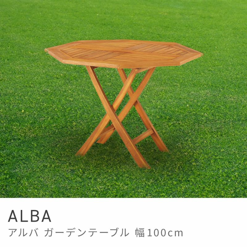 ナチュラルな天然木のガーデンテーブル 折りたたみテーブル 100cm 折り畳みテーブル 折畳みテーブル|ALBA