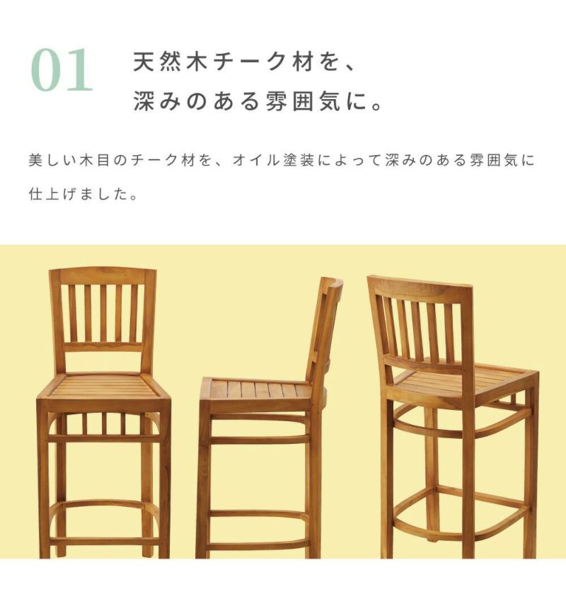 カウンターチェア 椅子 チェア ハイチェア 天然木 木製 おしゃれ シンプル 椅子 庭 ガーデン テラス 幅108cm 腰掛 カントリー ナチュラル 木目 北欧 キッチン