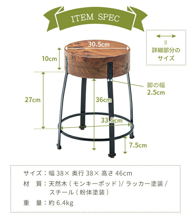 天然木の自然な質感を活かしたスツール スツール チェア 椅子 イス いす 腰掛け おしゃれ 天然木 木製 丸型|XARA