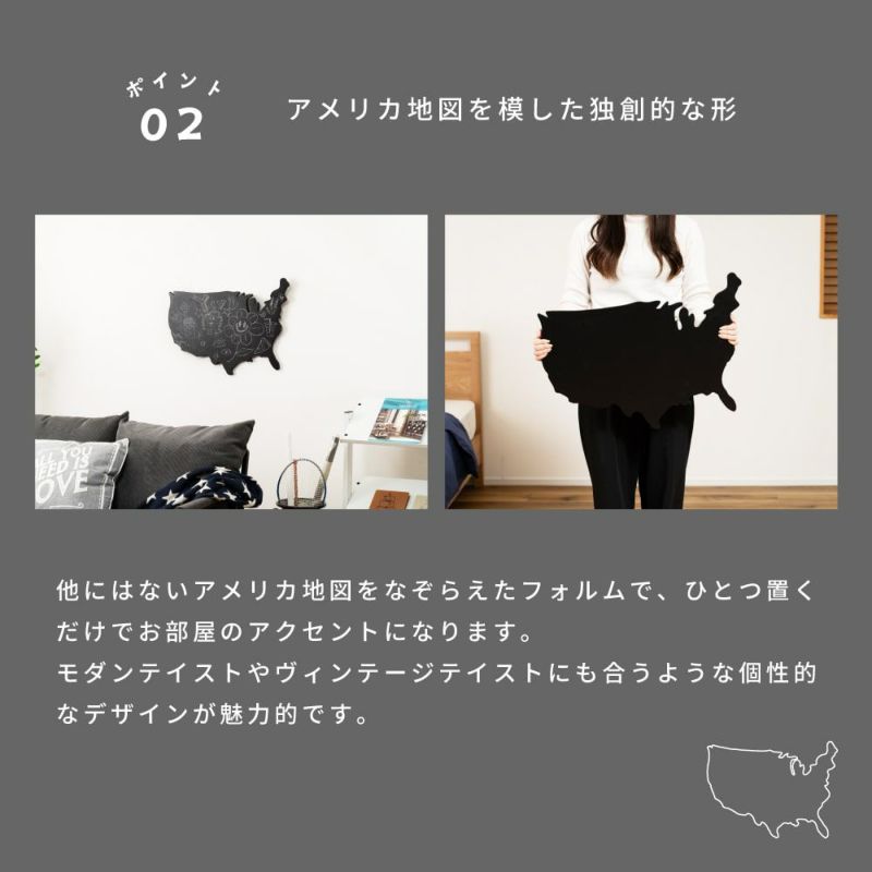 他にはないアメリカ地図をなぞらえたフォルムで、ひとつ置くだけでお部屋のアクセントになります。