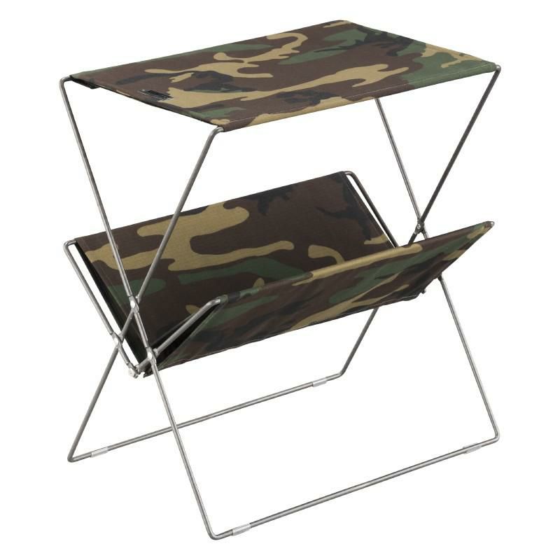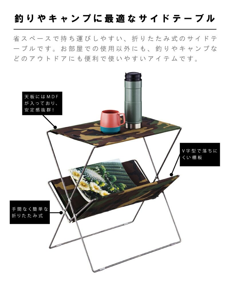 アウトドアテーブル 折りたたみ 軽量 ナイトテーブル サイドテーブル 収納 おしゃれ コンパクト ラック 持ち運び ソロ キャンプ ファブリック インダストリアル グランピング 棚