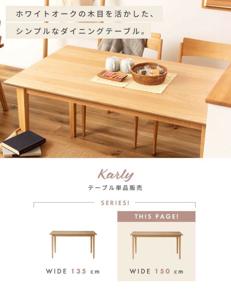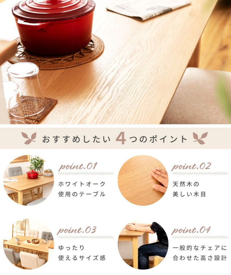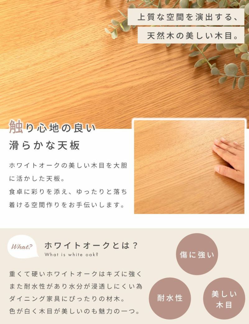 ●ホワイトオークの木目を活かした、シンプルなダイニングテーブル。