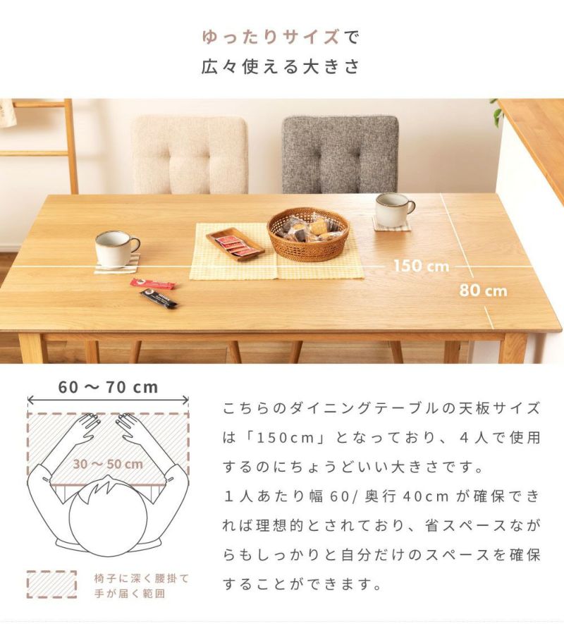 ダイニングテーブル テーブル 幅150cm 食卓テーブル カフェテーブル 4人 4人用 おしゃれ 木製 食卓机 シンプル ダイニング リビング 長方形 天然木 ナチュラル