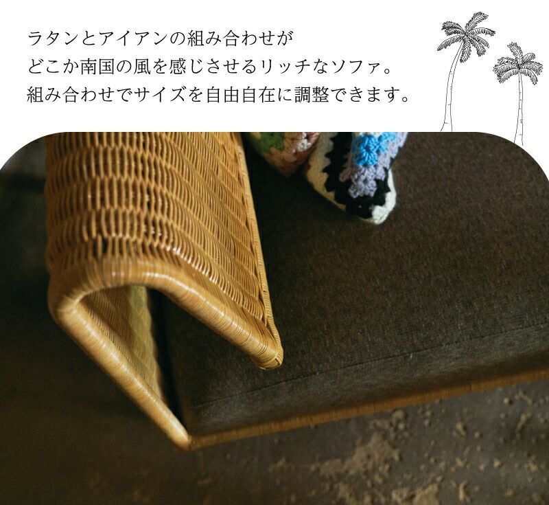 材質 ラタン/アイアン(粉体塗装)/ウレタン塗装/ポリプロピレン/ポリエステル