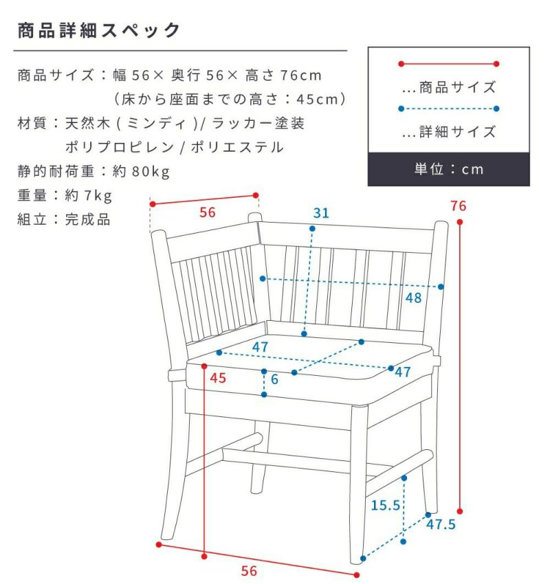 材質 天然木(ミンディ)/ラッカー塗装/ポリプロピレン/ポリエステル