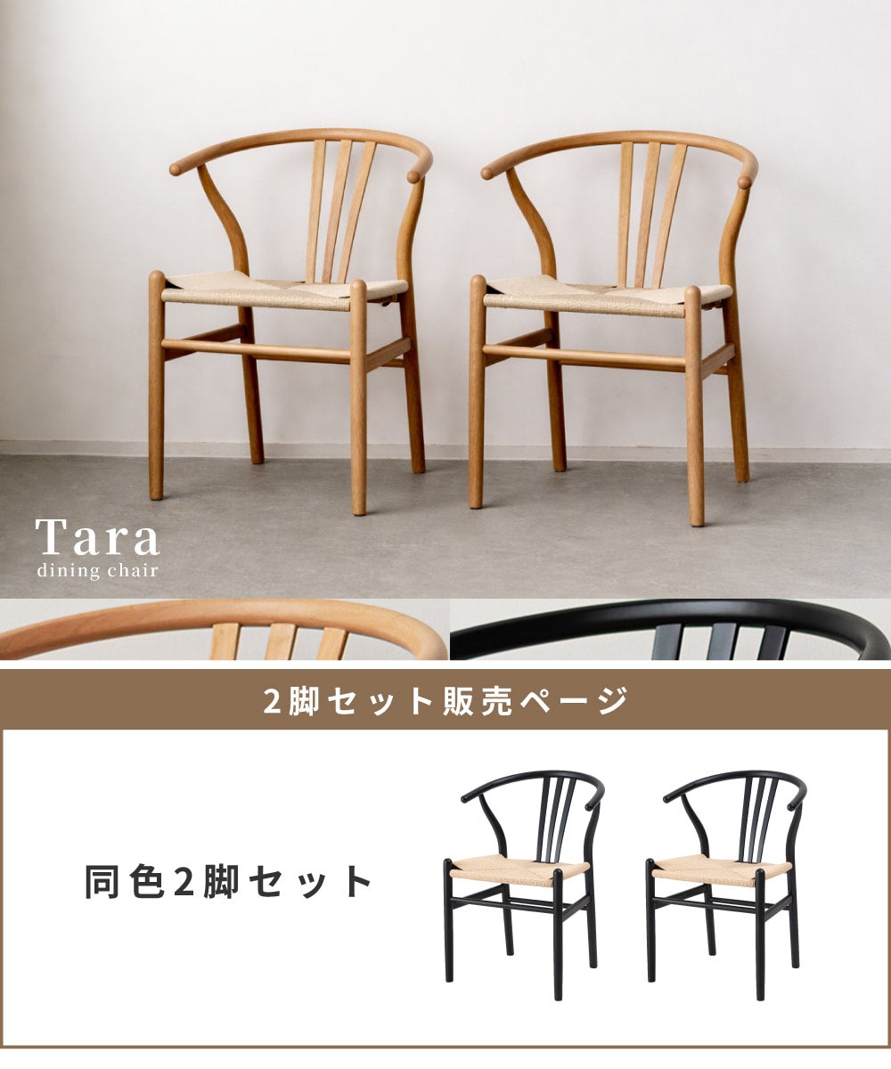 軽やかなペーパーコードチェア [2脚セット]ダイニングチェア ペーパーコード 完成品 北欧 ナチュラル 椅子 おしゃれ アーム|Tara
