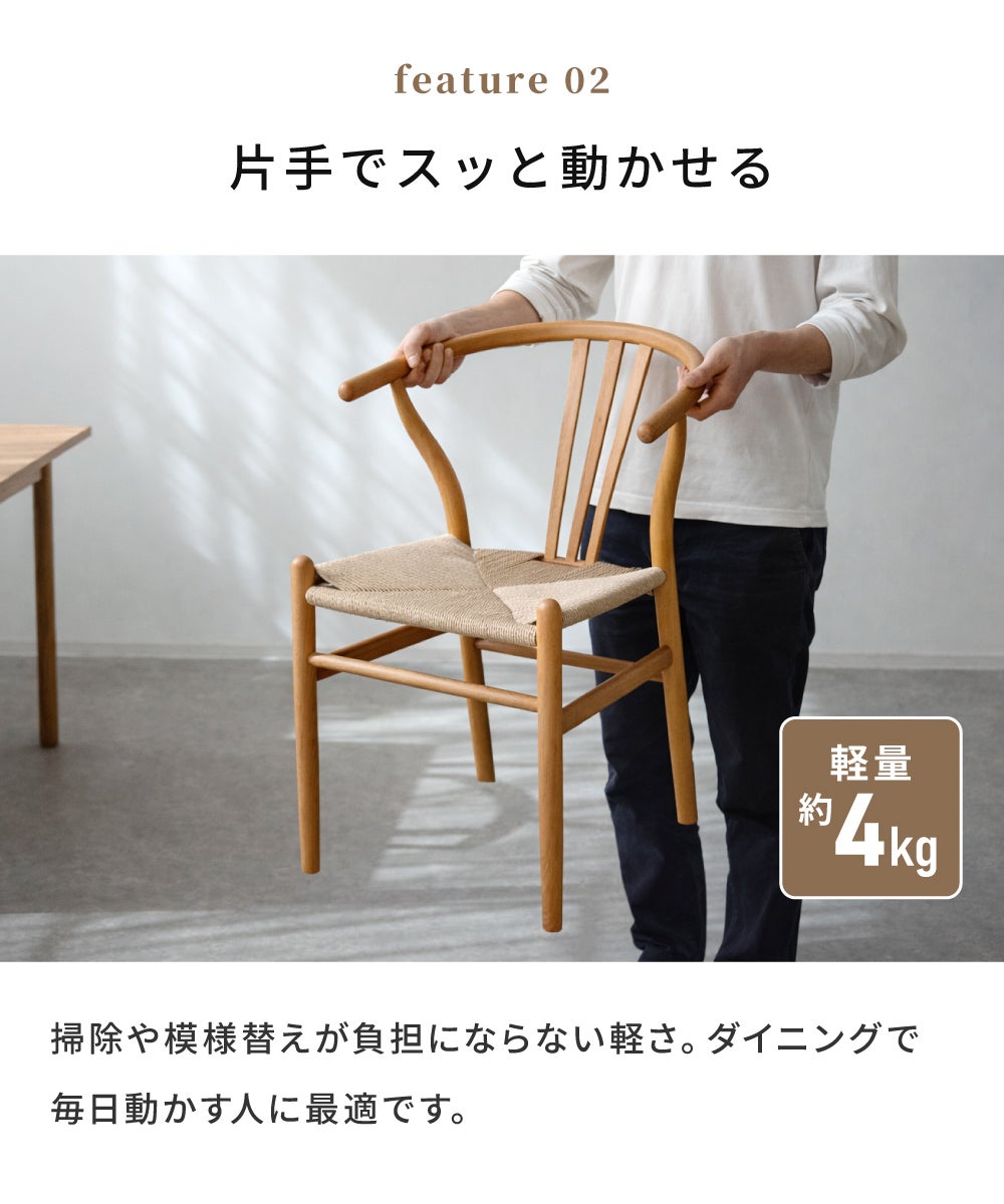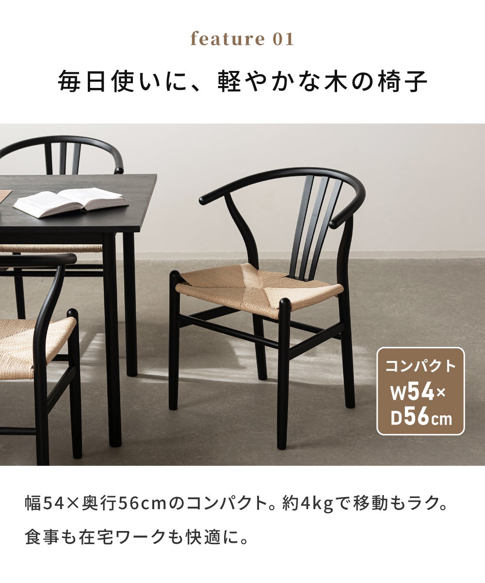 軽やかなペーパーコードチェア [4脚セット]ダイニングチェア ペーパーコード 完成品 北欧 ナチュラル 椅子 おしゃれ アーム|Tara