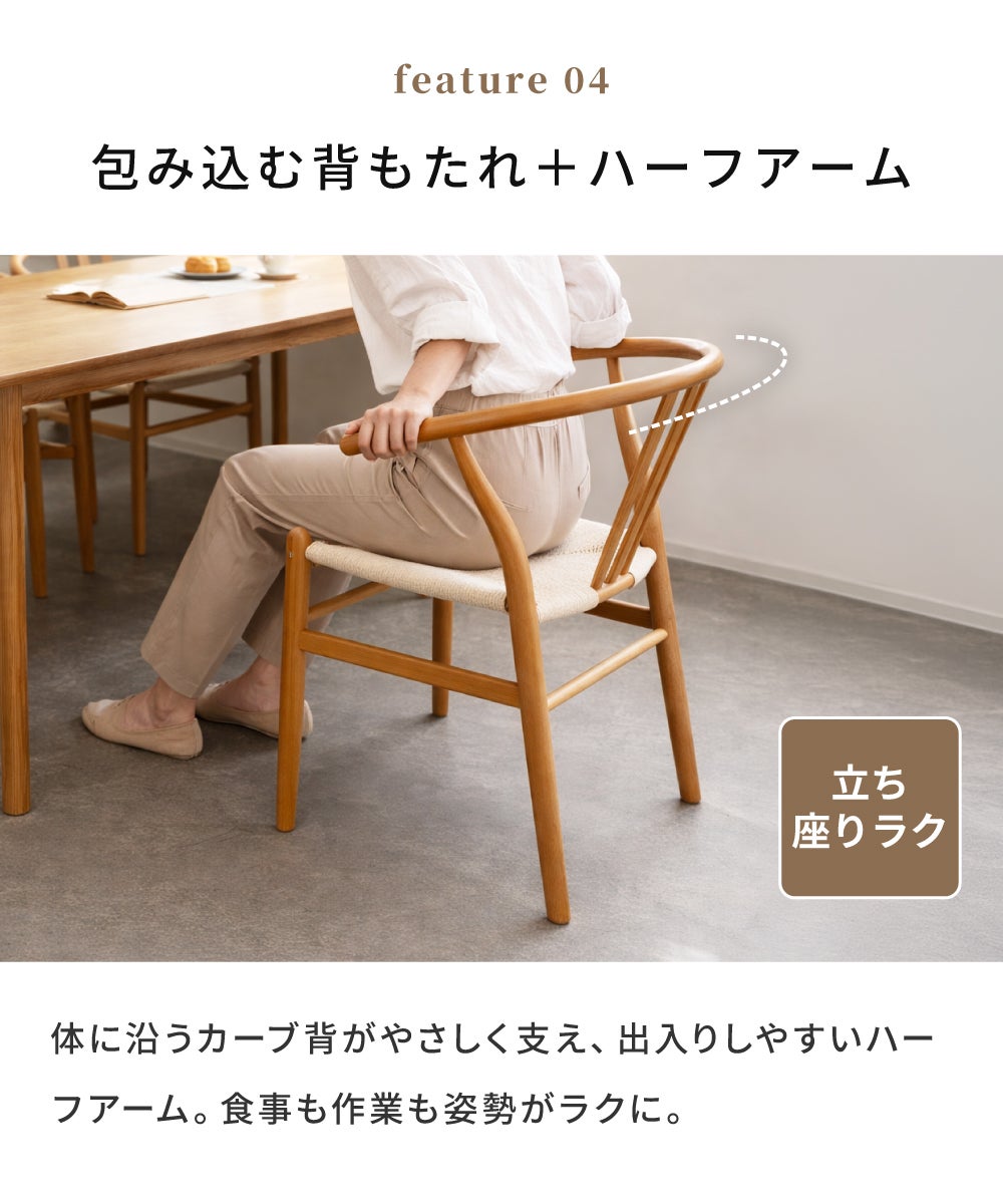 軽やかなペーパーコードチェア ダイニングチェア ペーパーコード 完成品 北欧 ナチュラル 椅子 おしゃれ アーム|Tara
