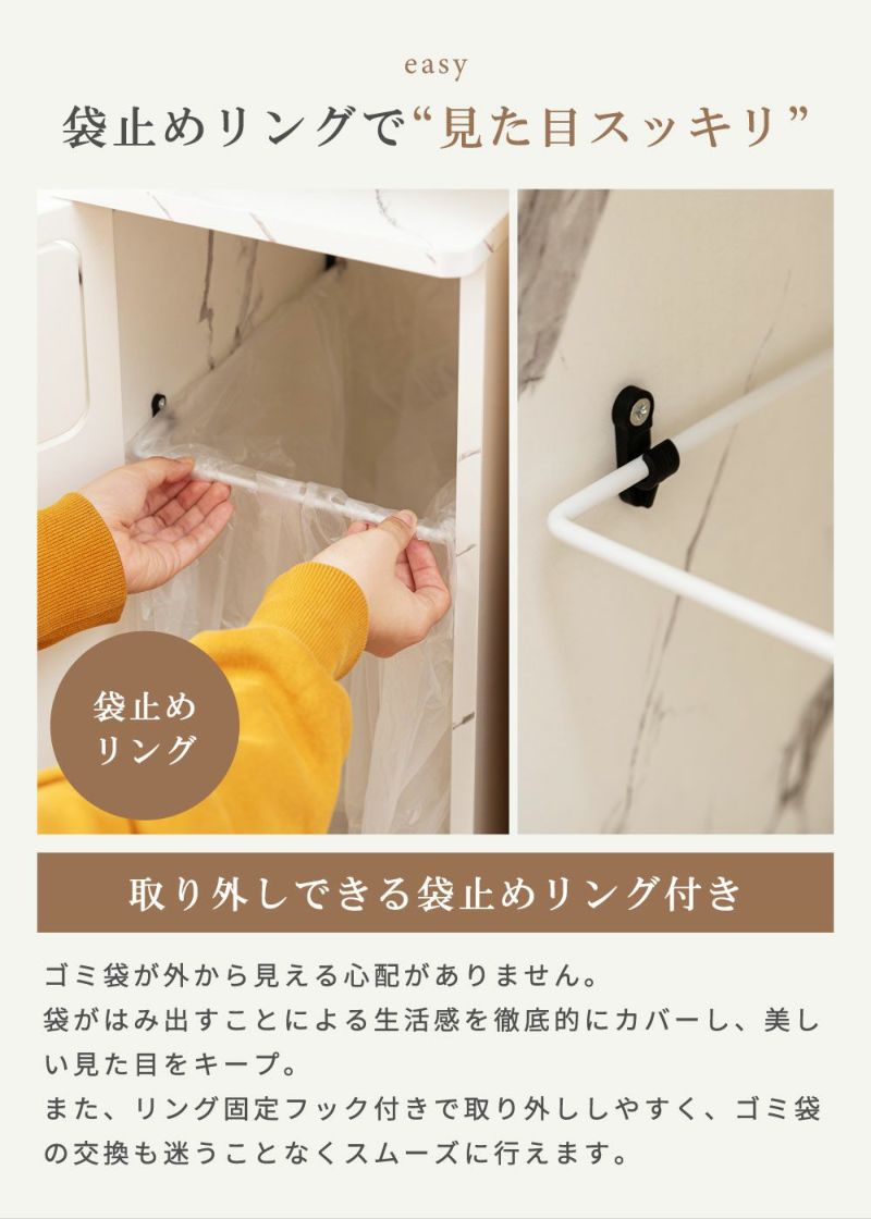 また、リングは取り外ししやすく、ゴミ袋の交換も迷うことなくスムーズに行えます。