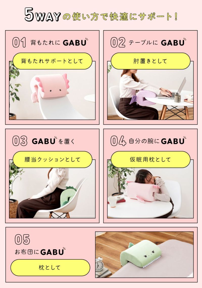 挟んで挟まれて5通りにあなたをお手伝い クッション 腰当て 枕 肘置き 背もたれ かわいい ポップ 恐竜|GABU