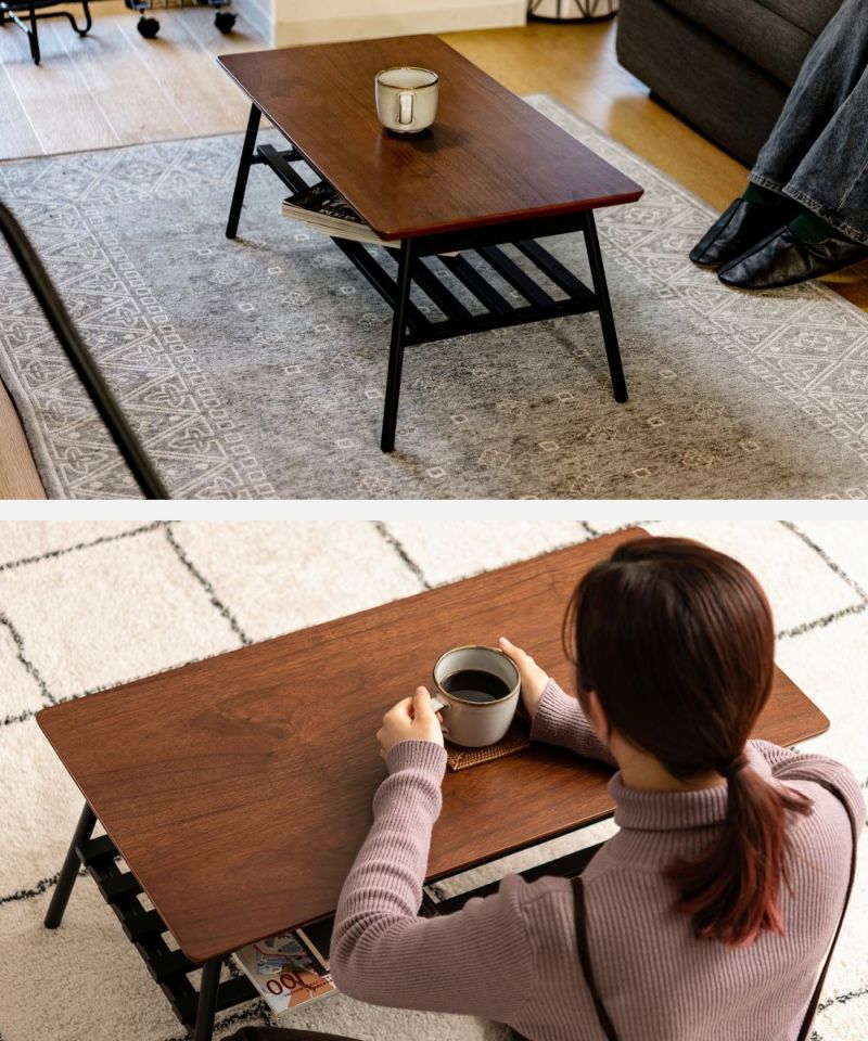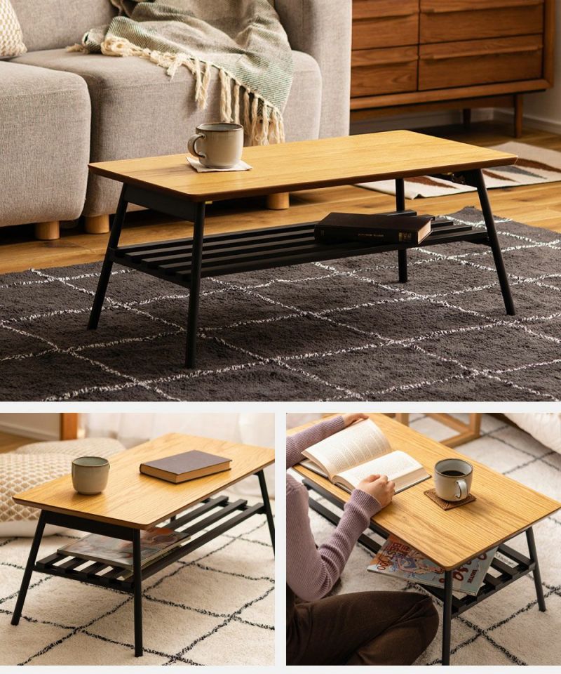 雑誌やリモコン、ティッシュなどを棚に置けば、天板を広く有効的に使うことができお部屋もすっきり。