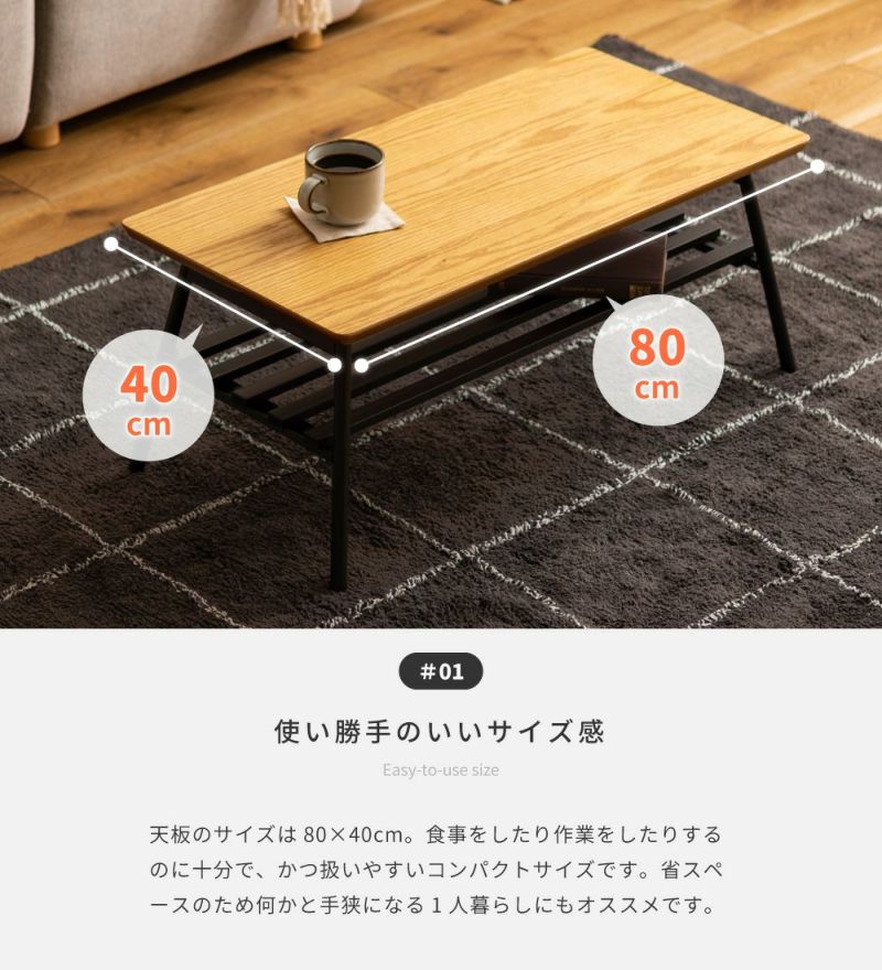 食事をしたり作業をしたりするのに十分で、かつ扱いやすいコンパクトサイズです。