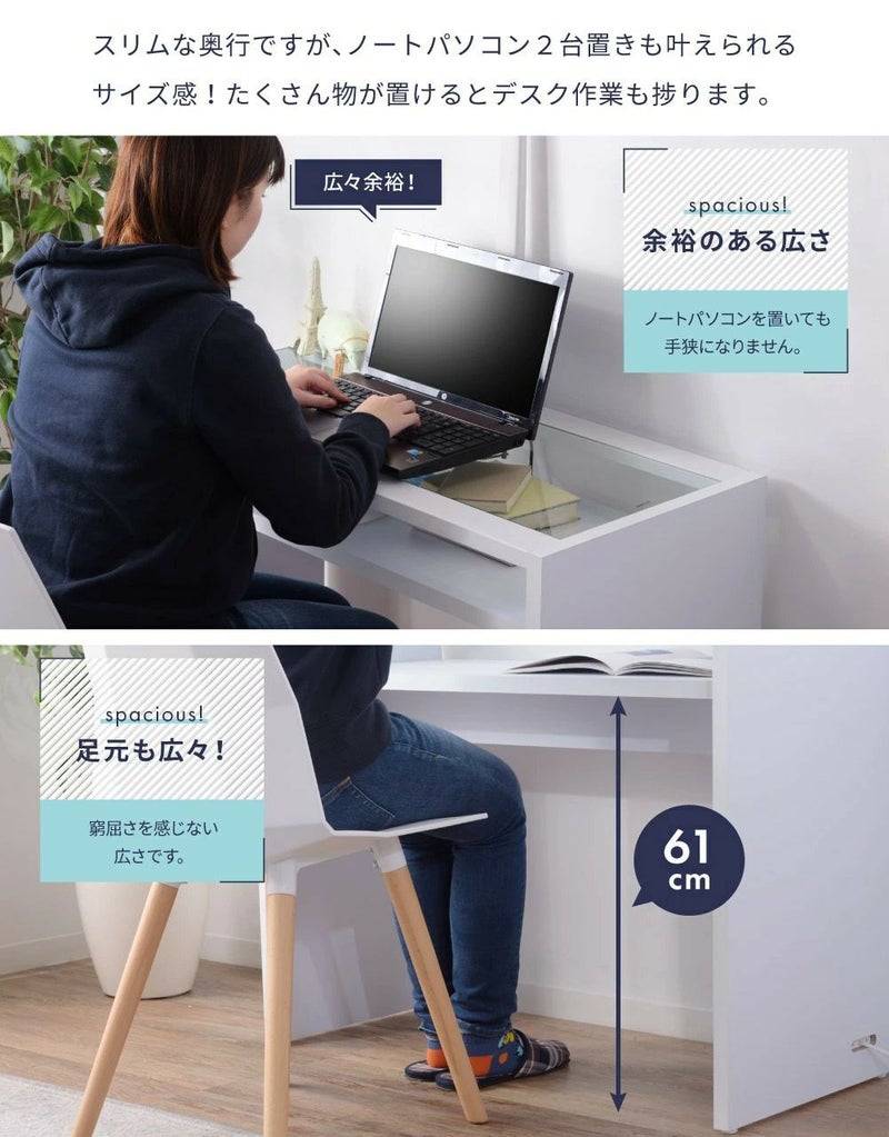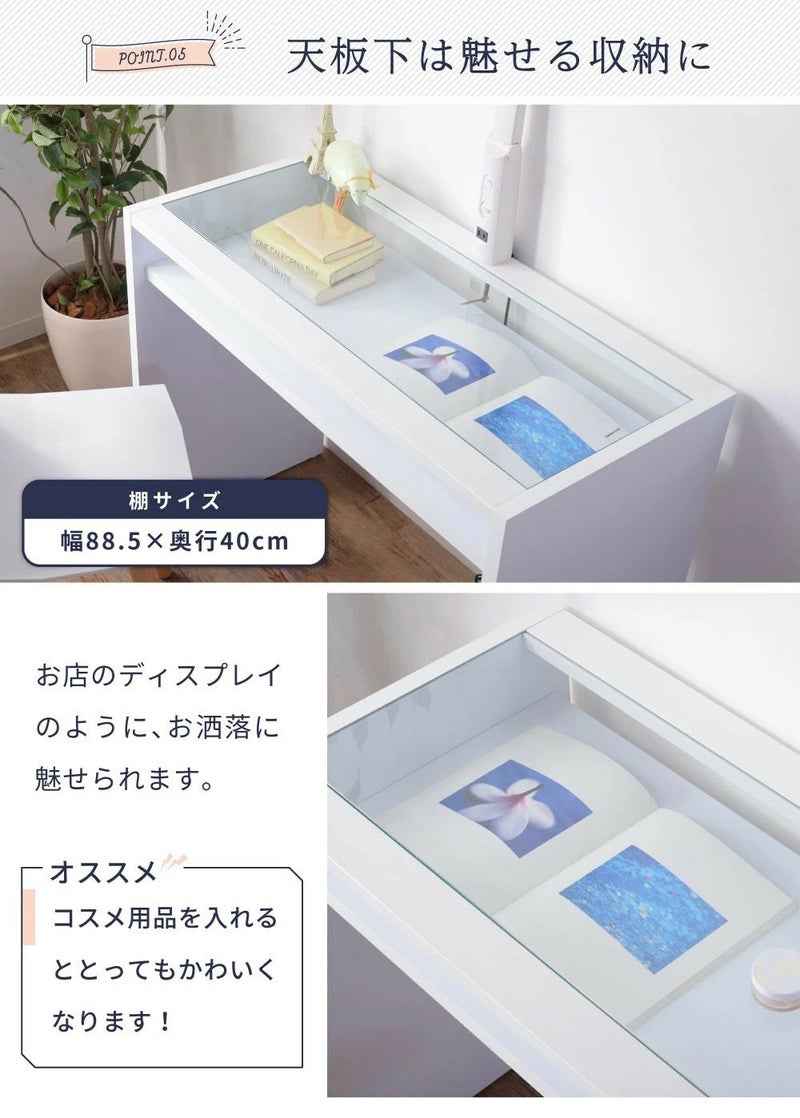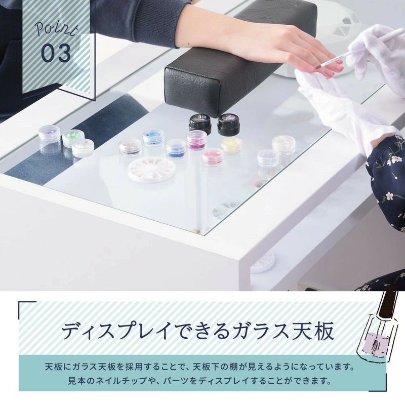 ネイルテーブル ネイルデスク 幅96 白 ガラス 木製 棚付き 収納 ディスプレイ シンプル スリム 作業台 コンセント付き サロン 韓国インテリア ホワイト 透明