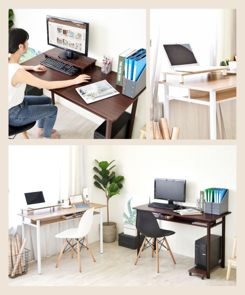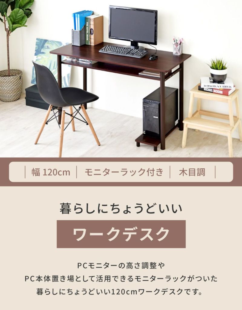 ミニ台付きで快適な作業空間整う 天板下収納付きデスク モニターラック付き 幅120cm |Eldon