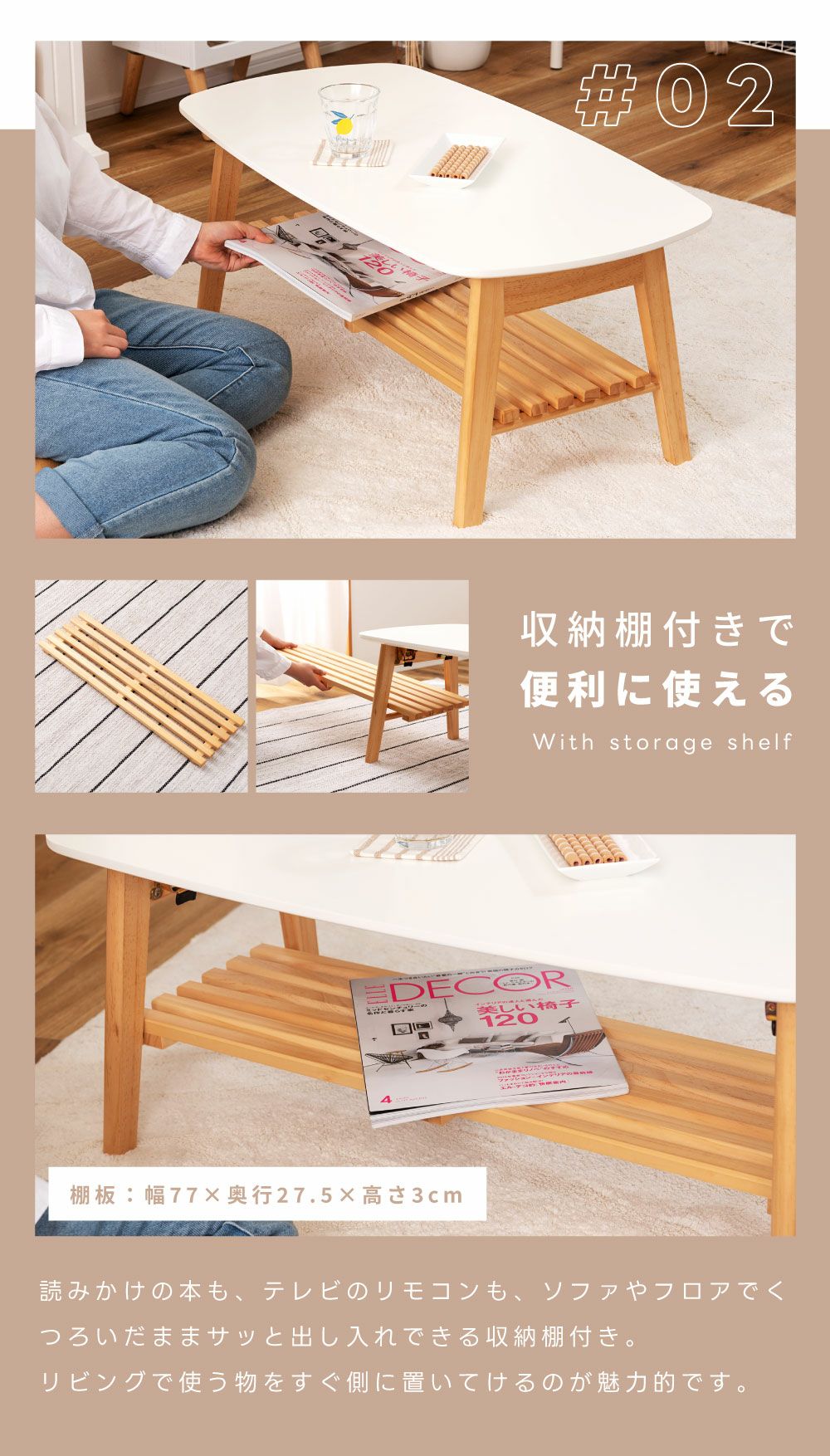他の画像を見る 棚付き・折りたたみテーブル 幅80cm 折りたたみテーブル 幅80cm ローテーブル 収納 センターテーブル|Paul 完成品 販売価格 ¥ 8,980 税込 (0) お気に入りに登録する