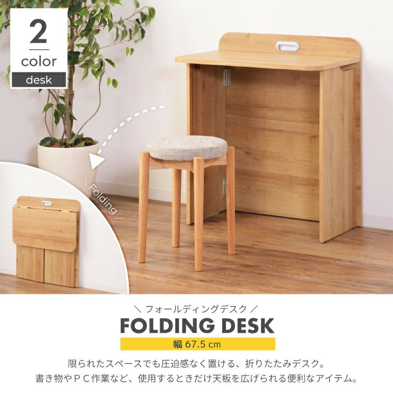 ●限られたスペースでも圧迫感なく置ける、折りたたみデスク。