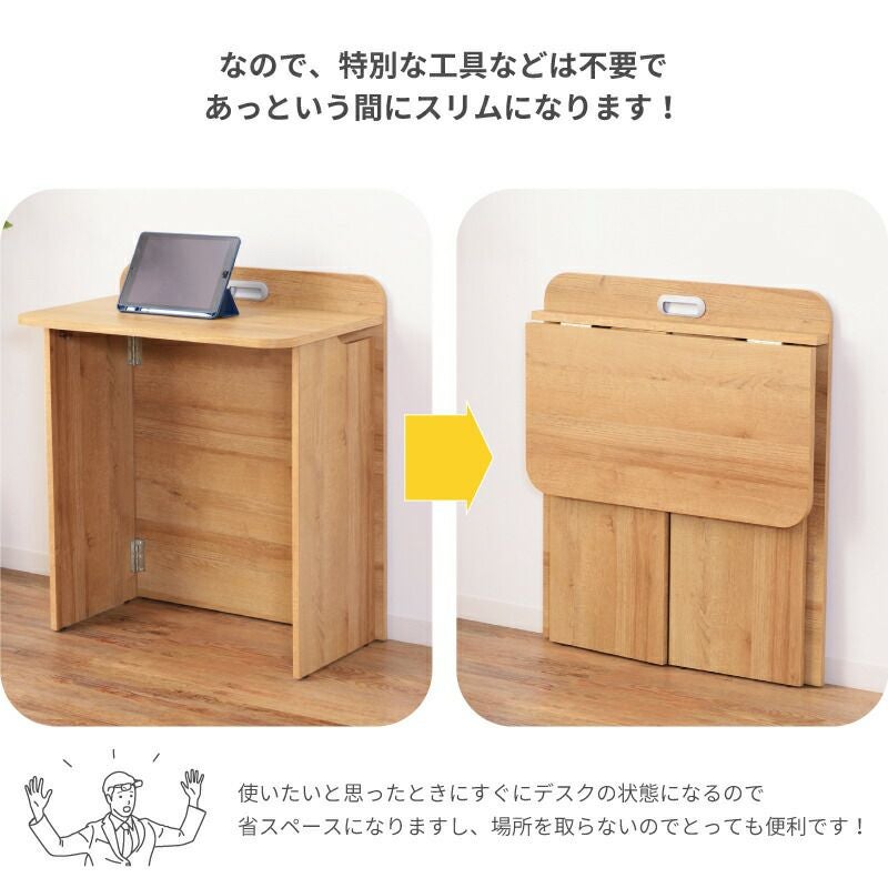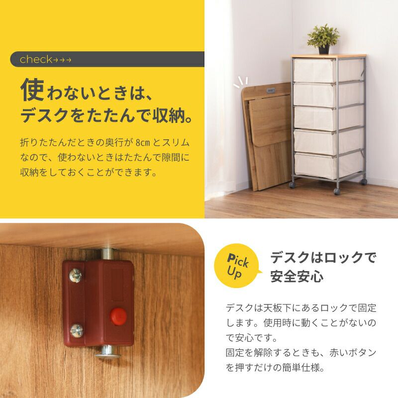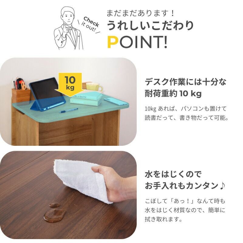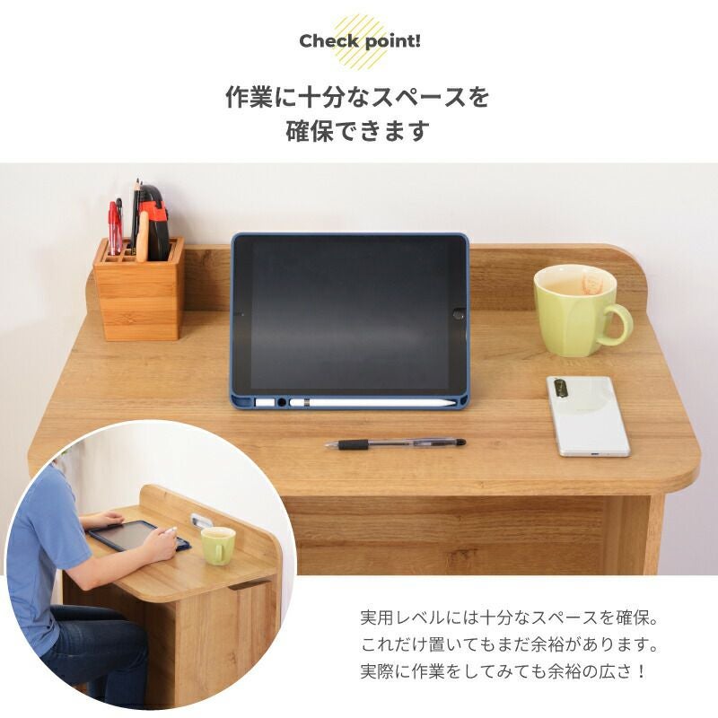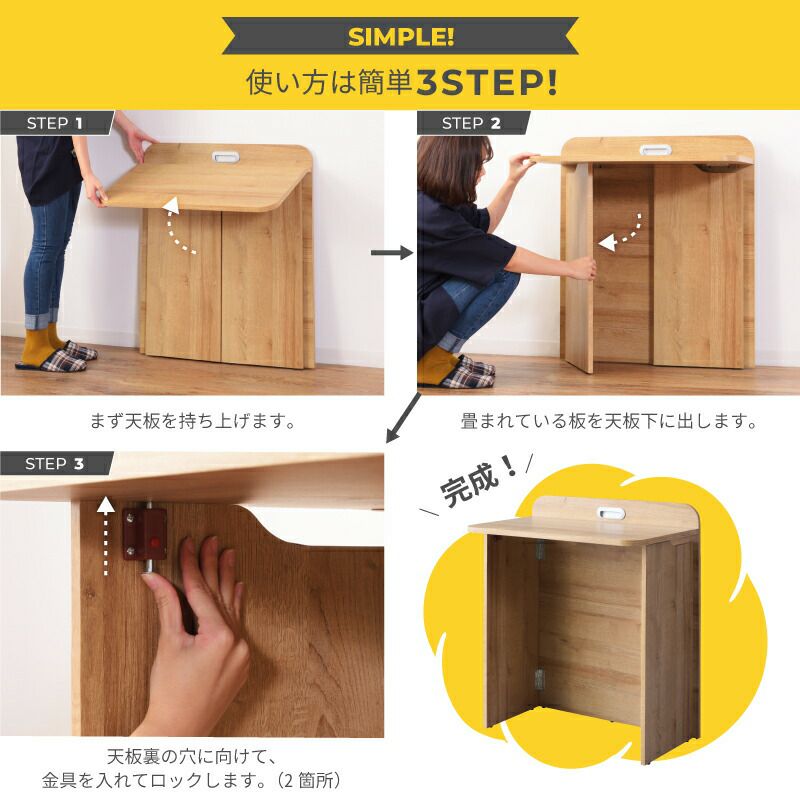 書き物やPC作業など、使用するときだけ天板を広げられる便利なアイテム。