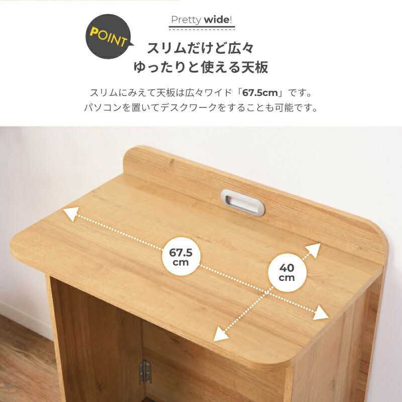 スリムに見えて天板は広々ワイド「67.5cm」です。