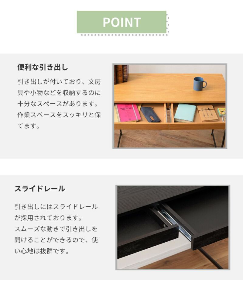 スムーズに開く引き出しが、左右1杯ずつ付いています。
