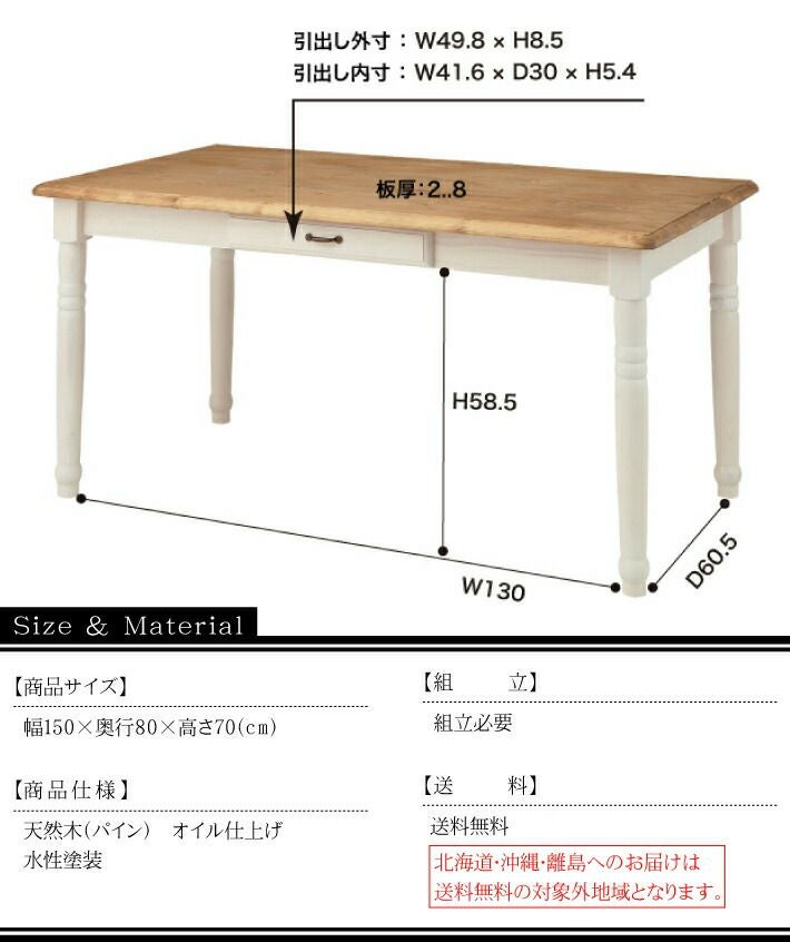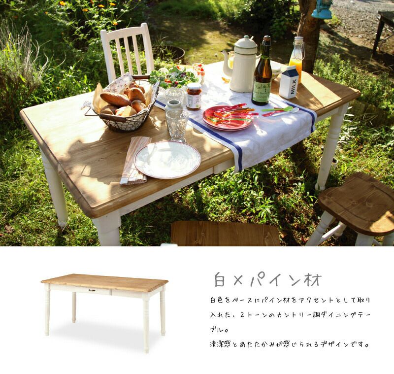 他の画像を見る 2トーンのカントリー調ダイニングテーブル ダイニングテーブル 幅150cm テーブル 北欧 4人掛け 天然木 木製|CLAIR 送料無料 ¥ 84,920 税込 (0) お気に入りに登録する