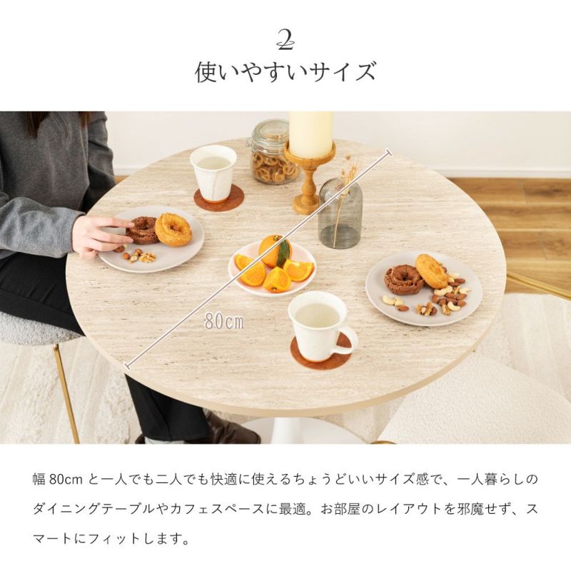 ラウンドテーブル カフェテーブル 一人暮らし 丸 テーブル 円形 かわいい オシャレ ダイニングテーブル 北欧 正円 シンプル 80×80 テーブル ホワイト ナチュラル ベージュ 大理石 風 石目調 スチール カフェ 二人用