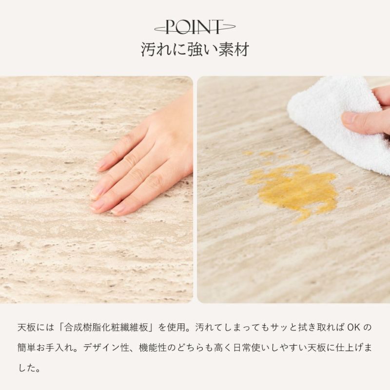 大理石調の天板と、ホワイトの脚部が優しい印象を与えます。