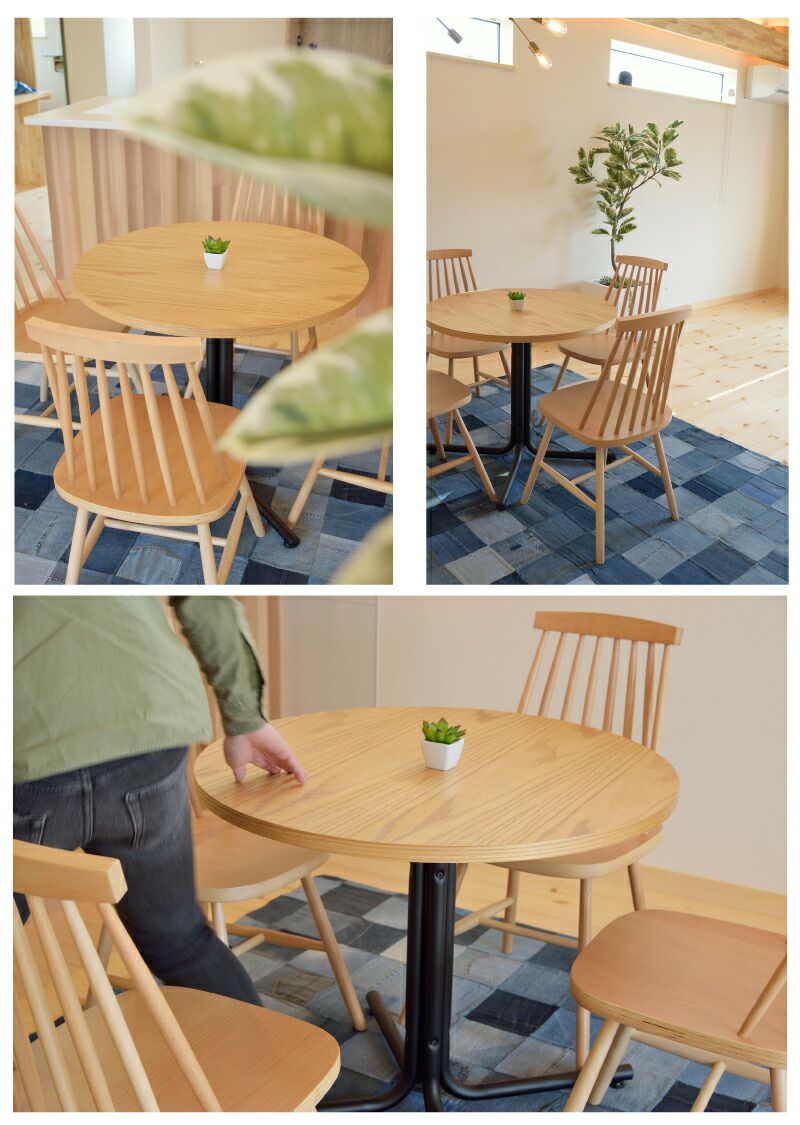 ●シンプルなデザインだからこそ使いやすい、木製×スチールのカフェテーブル