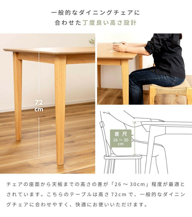 こちらのテーブルは高さ72cmで、一般的なダイニングチェアに合わせやすく、快適にお使いいただけます。