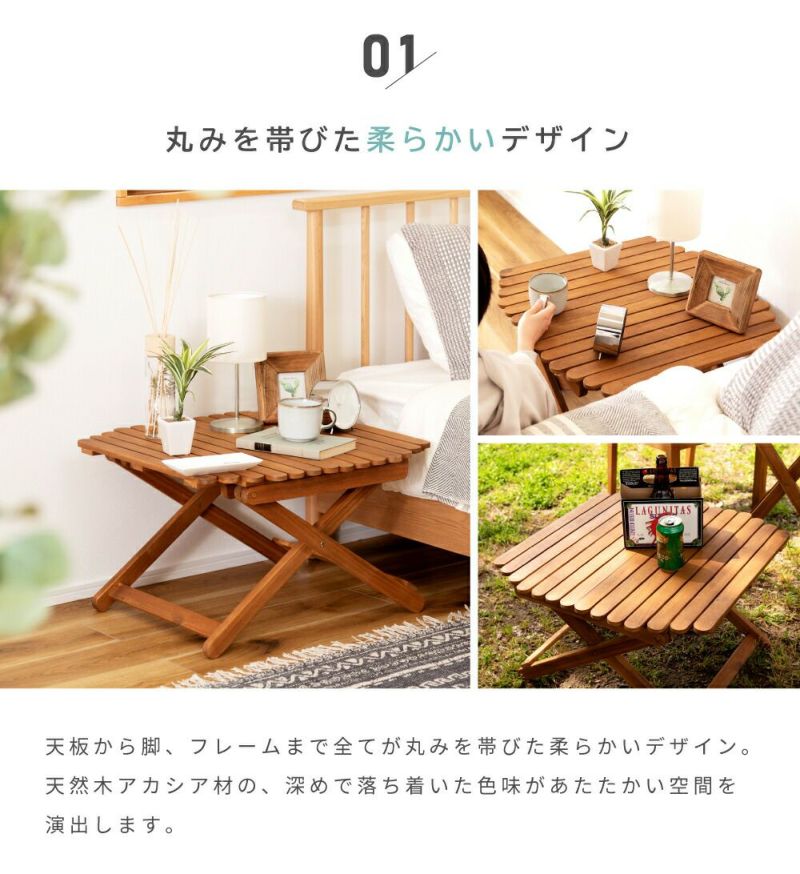 アカシア材と丸みを帯びた魅力 折りたたみテーブル ローテーブル フォールディング 天然木 木製 机 おしゃれ|IMRAL