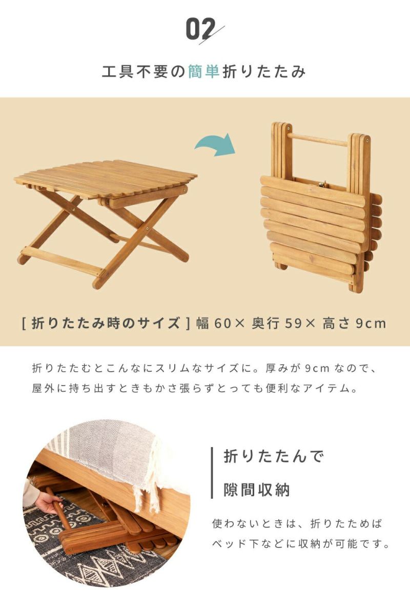アウトドアテーブル 折りたたみ 木製 おしゃれ フォールディングテーブル ローテーブル 天然木 コンパクト 収納 丸角 グランピング ナイトテーブル サイドテーブル 一人暮らし