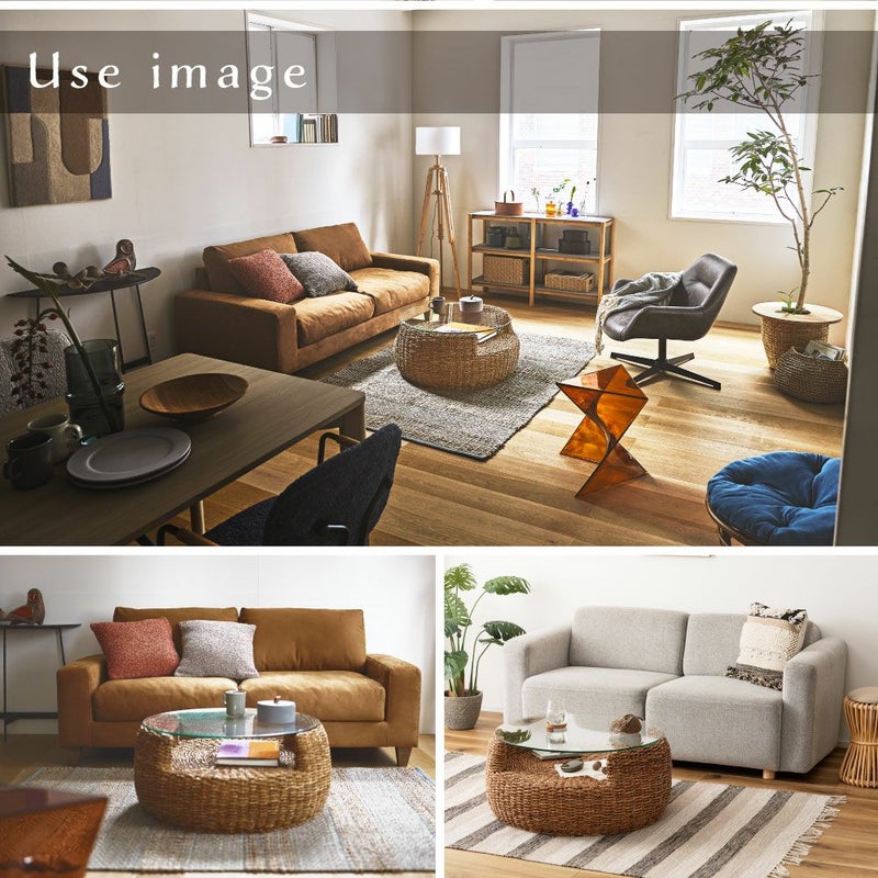 上品な印象と開放感を与えるガラス天板と、天然素材の素朴な色合いの組み合わせがお部屋を美しく彩ります。