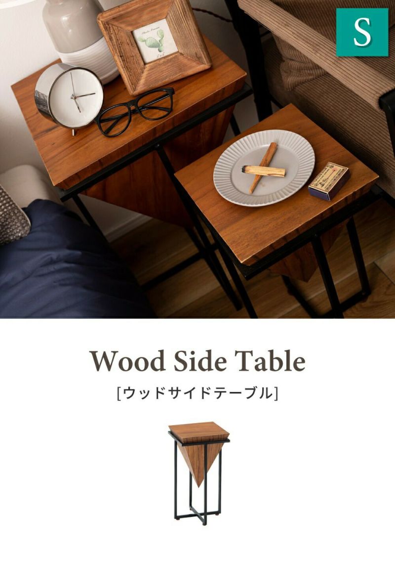ナイトテーブル サイドテーブル 木製 コンパクト スリム 正方形 ベッドナイトテーブル サイドテーブル インダストリアル 北欧 天然木 スチール ヴィンテージ Sサイズ スタイリッシュ おしゃれ