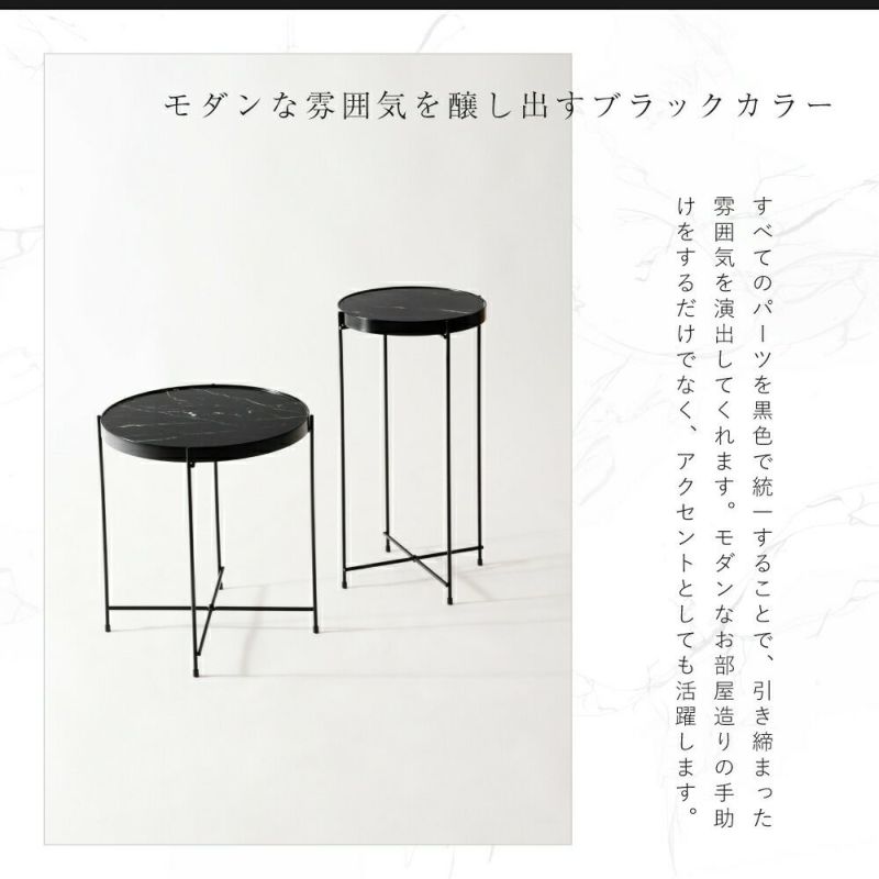 ●ブラックカラーの大理石柄でお部屋を引き締めるサイドテーブル