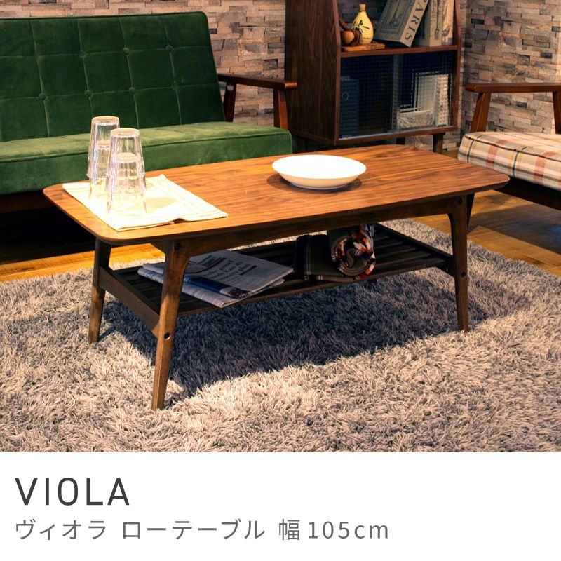 ウォールナットの木目が美しい ローテーブル 幅105 棚付き センターテーブル コーヒーテーブル|VIOLA