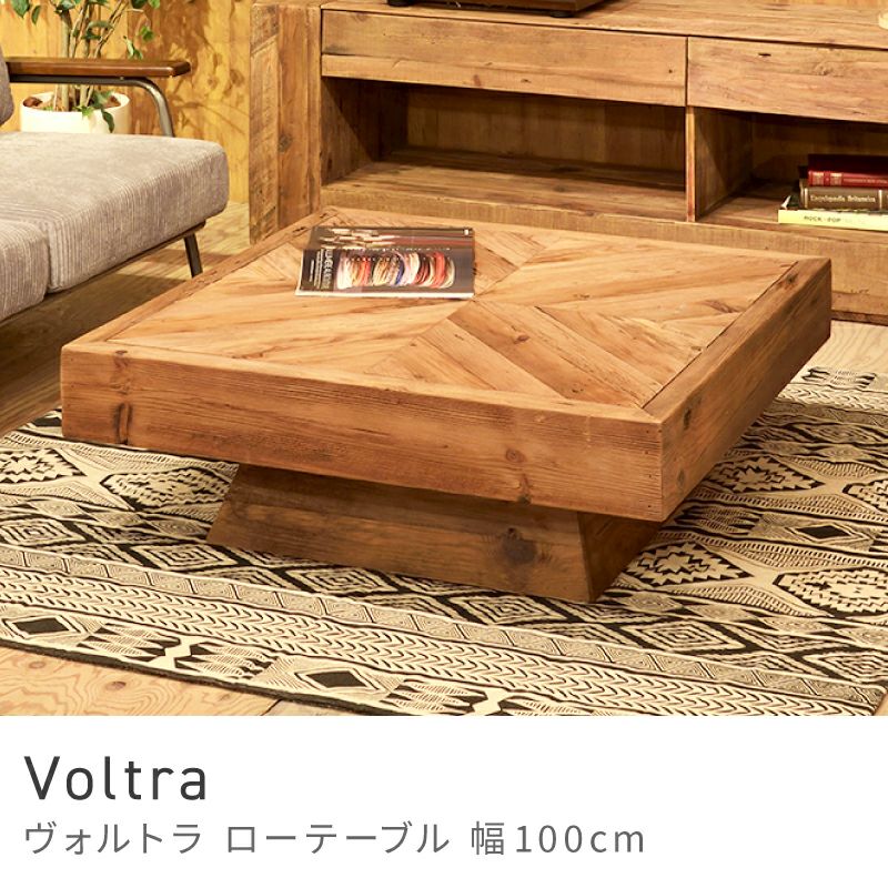 コーヒーテーブル センターテーブル ローテーブル 幅100cm 天然木 古材 角丸 正方形 おしゃれ 机 木製 ヘリンボーン 柄あり ヴィンテージ ビンテージ シンプル レトロ コーナー