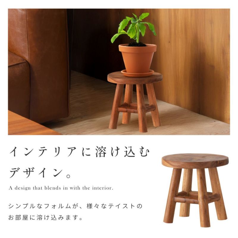 フラワースタンド プランタースタンド 花台 小さい 高さ19cm 室内 屋外 木製 天然木 チーク ミニ コンパクト おしゃれ 丸 円 ベランダ 木 省スペース 幅19cm 鉢 鉢植え 植木鉢 玄関 観葉植物 庭 プランター 収納 収納棚 棚付き 個体差 手作り 木目 ブラウン 茶色