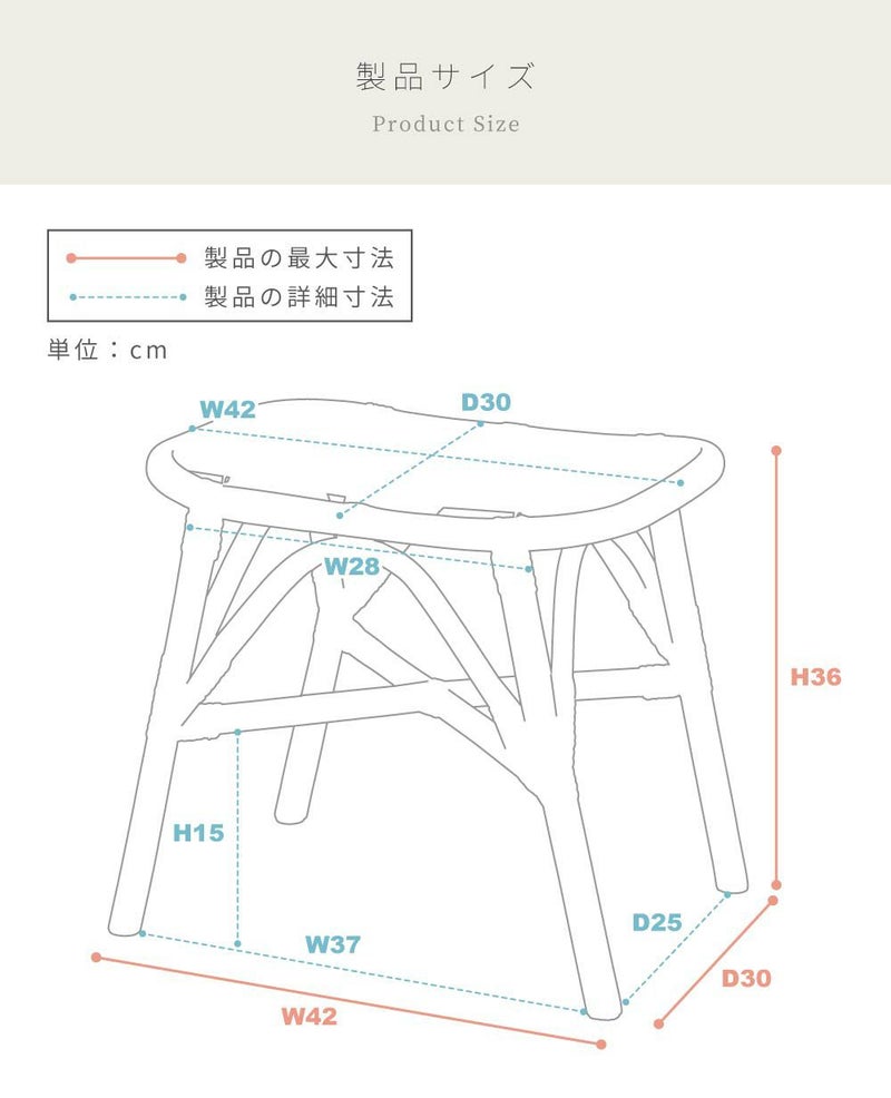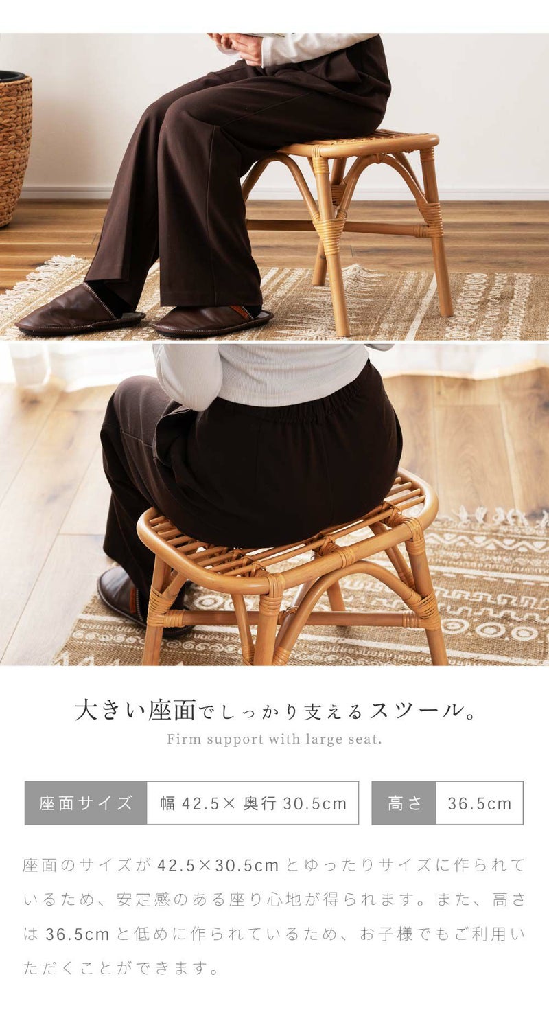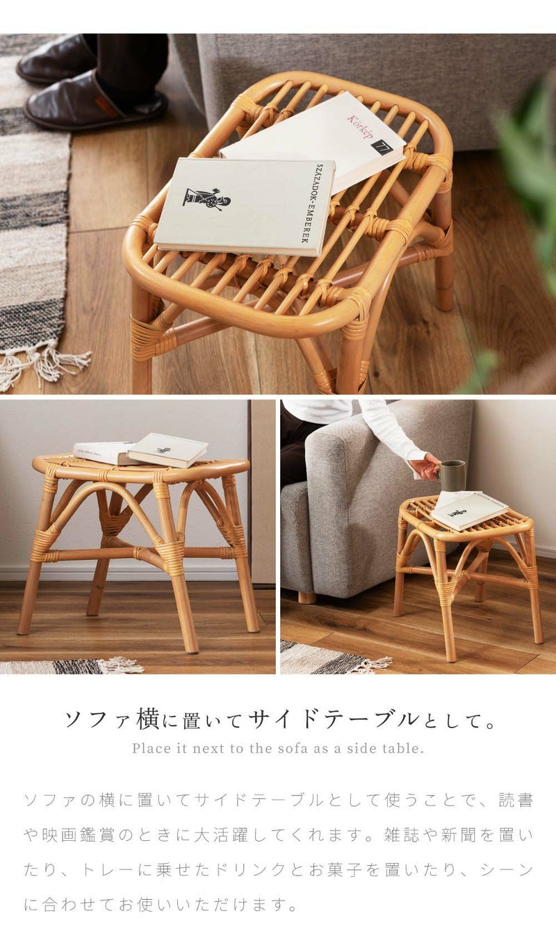 スツール ラタン 高さ36.5 ワイド ナイトテーブル サイドテーブル オットマン ゆったり 背もたれなし 肘なし アームレス リゾート 南国 ナチュラル シンプル 玄関 リビング 籐