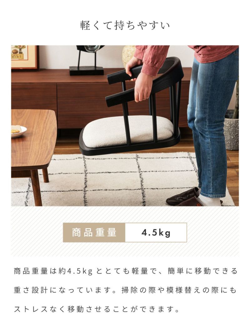 ●まるでダイニングチェアに座っているような安定感のある座り心地。