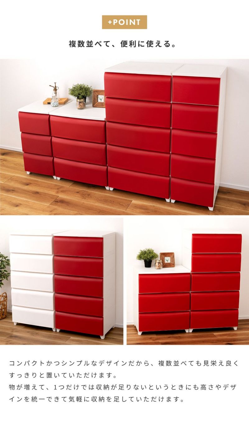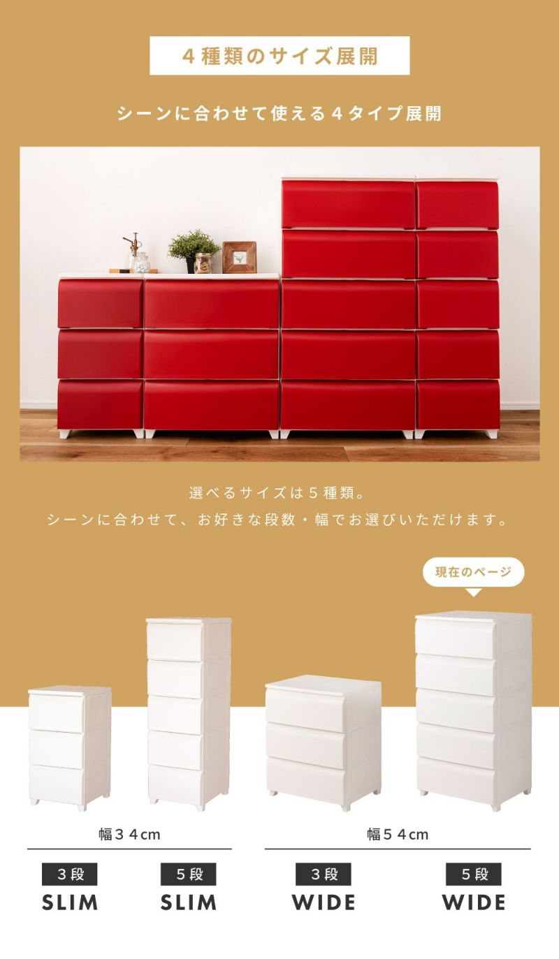 チェスト タンス 衣装ケース 収納ケース 5段 引き出し収納 収納家具 ハイチェスト リビングチェスト 収納チェスト 収納 ワイド ブラウン アイボリー レッド