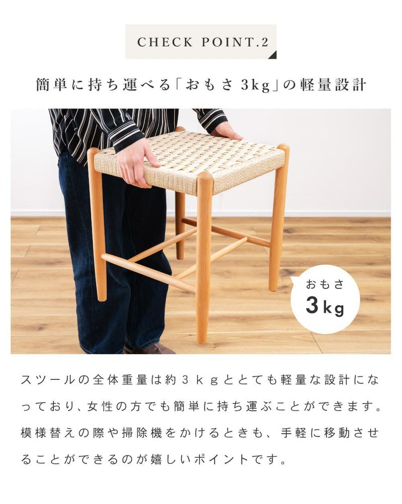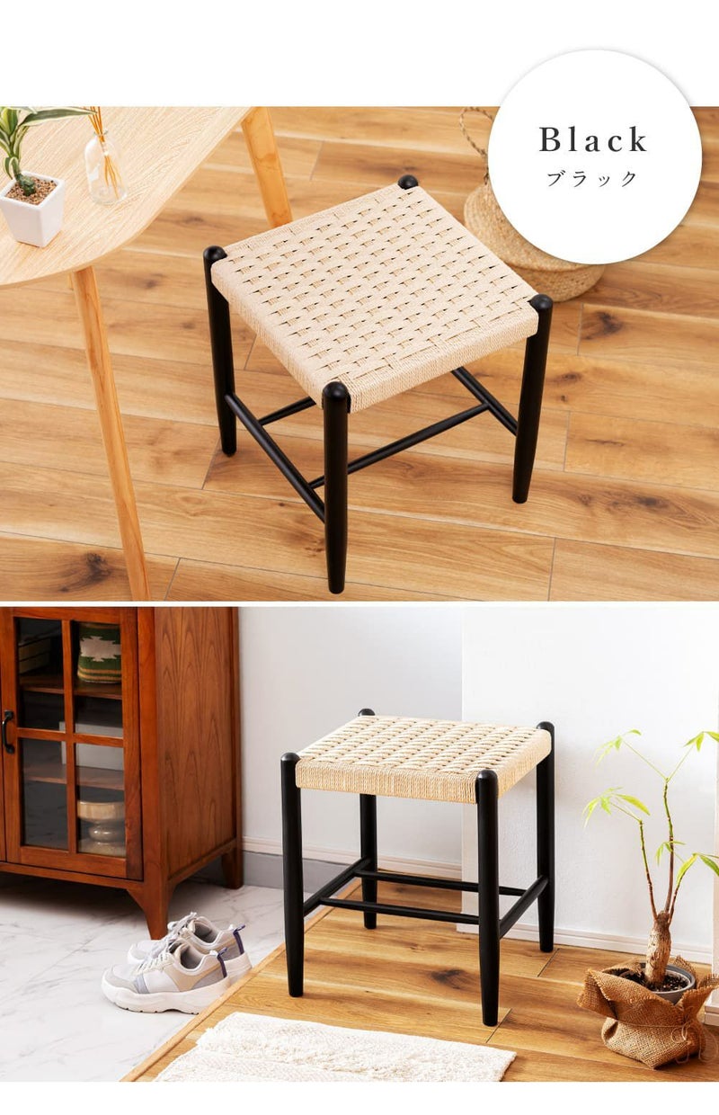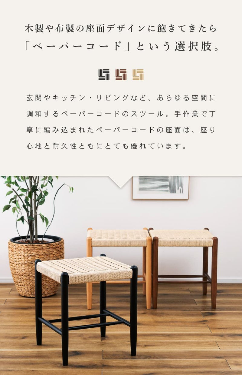 スツール 木製 椅子 幅40 正方形 おしゃれ ペーパーコード チェア 玄関 完成品 腰掛 リビング ダイニング 天然木 ビーチ材 軽量 編み目 リゾート 来客 1人掛け