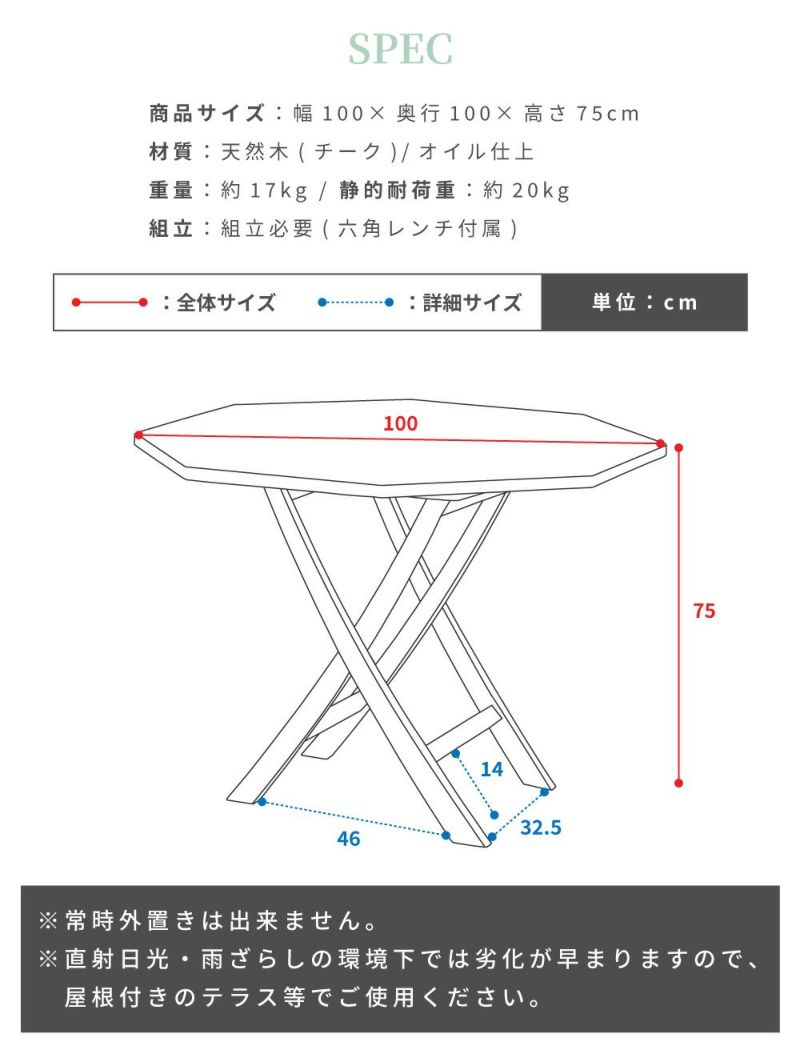 アウトドアテーブル ガーデンテーブル 天然木 木製 おしゃれ シンプル 八角形 テーブル 庭 ガーデン テラス 幅100 高さ75 アウトドア グランピング 庭 ベランダ